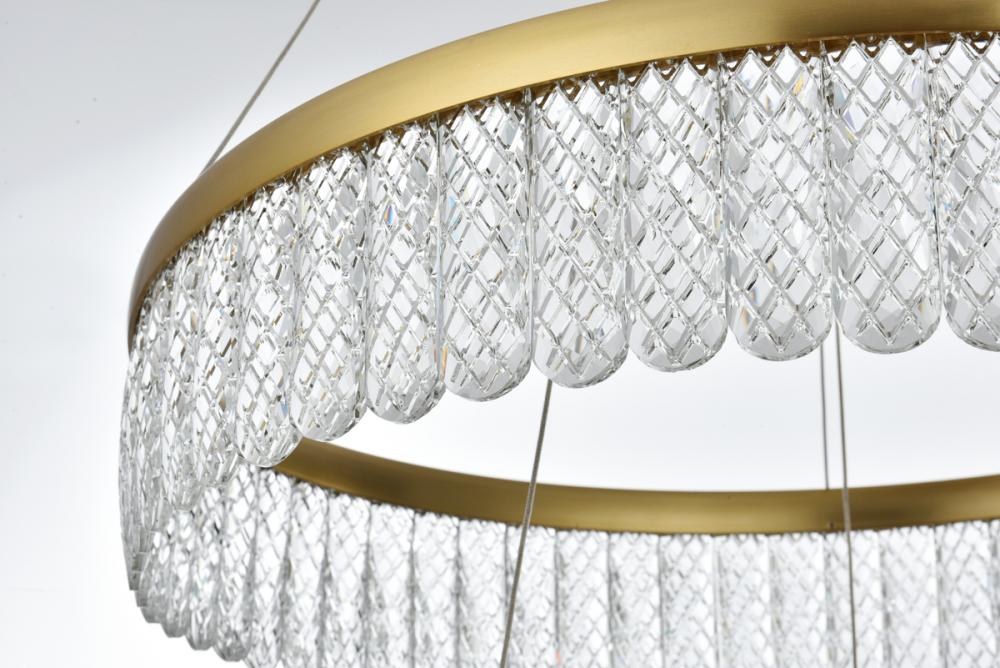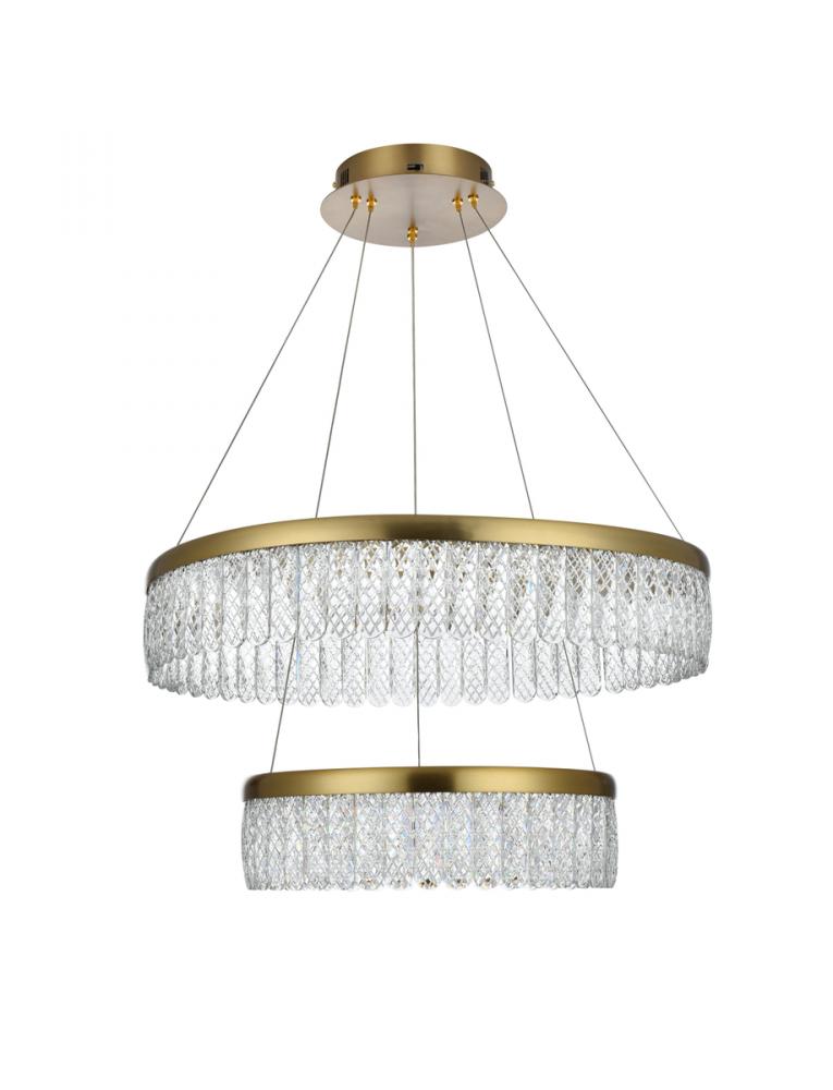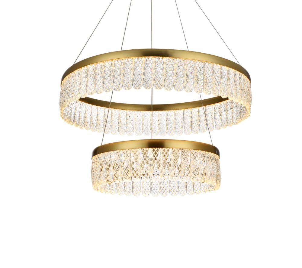 Our 24-inch Chandelier features two ring tiers, each adorned with crystals through which the light is gracefully illuminated, creating a captivating interplay of radiance and elegance in your space.