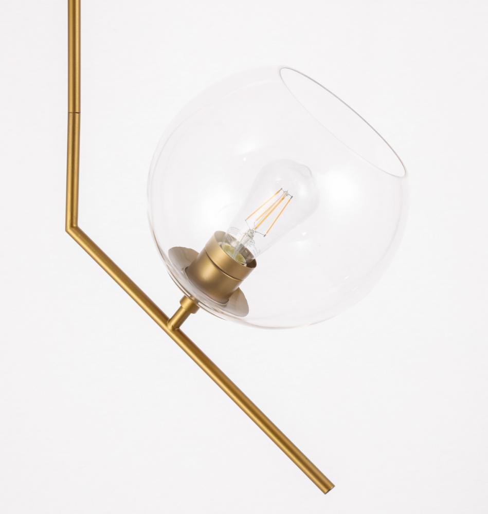 The Ryland Collection Pendant adds sophisticated elegance while still maintaining playful whimsy. The clean lines of the adjustable rod supports the light that is enclosed within the clear ball shade. Available in a brass, chrome, and two-toned black and brass finish, this fixture will add contemporary freshness to any room, your guests sure to notice your impeccable tastes in design (light bulbs not included).