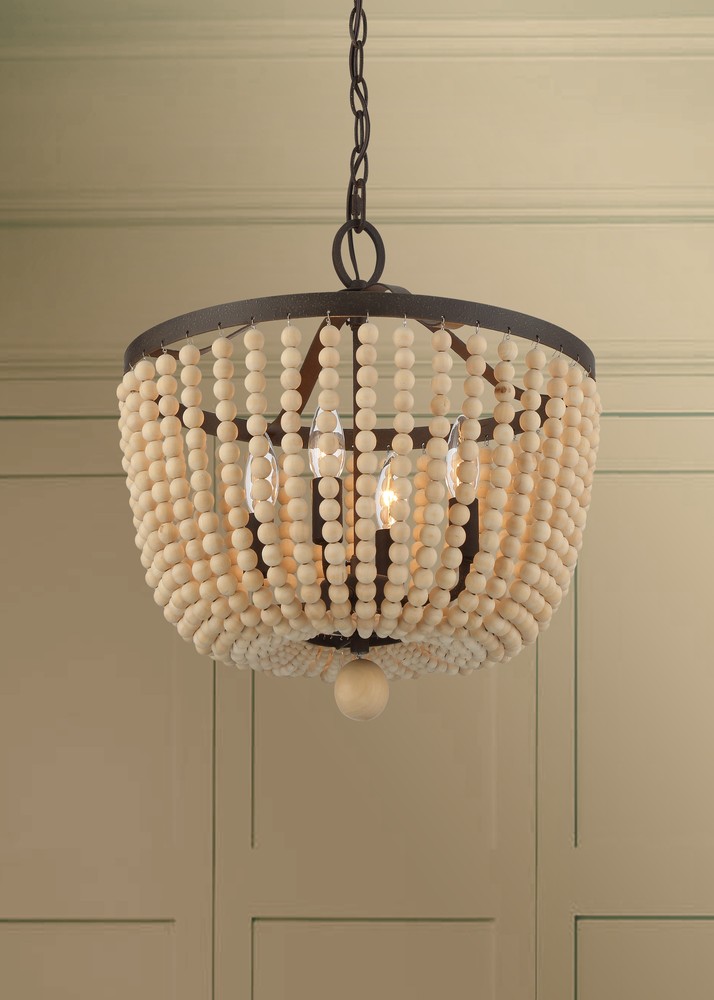 A traditional Empire shape meets modern elements in Crystorama's Rylee Collection. A circular-shaped hand-painted frame gives this fixture a vintage, distressed look, while the beads lend to a bohemian style flare. The Rylee creates a rich visual impact on any space in a perfect combination of texture and materials.
