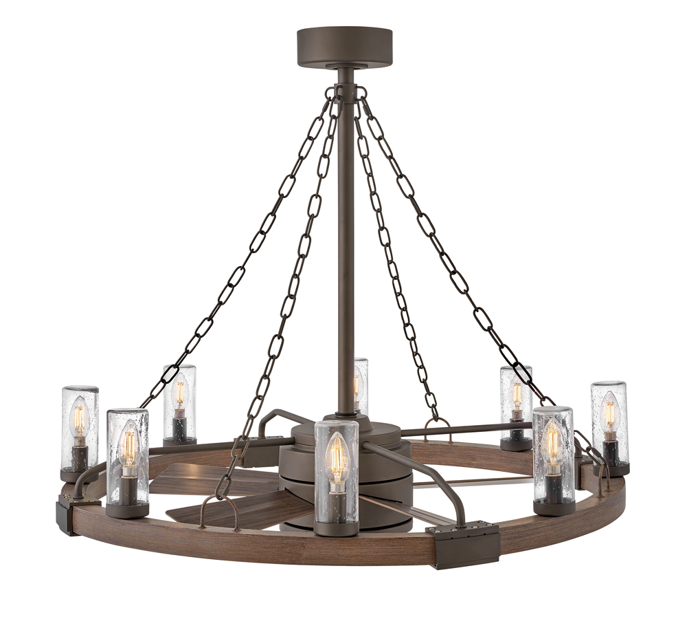 Fresh yet rustic, Sawyer will inject any outdoor living experience with the warm, cozy ambiance of an indoor setting. Available in variety of finish, accent, and blade combinations, Sawyer features durable composite materials and a versatile, wet-rated design. Operated by the HIRO control or WiFi compatible with the Hinkley App.
