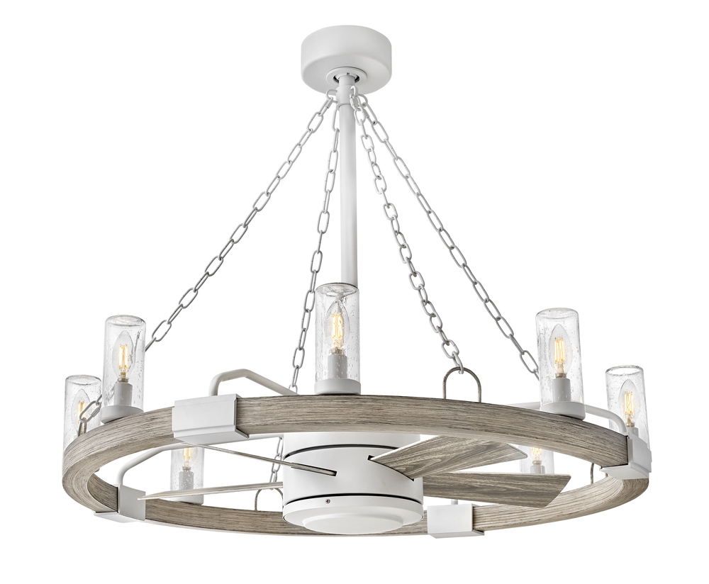 Fresh yet rustic, Sawyer will inject any outdoor living experience with the warm, cozy ambiance of an indoor setting. Available in variety of finish, accent, and blade combinations, Sawyer features durable composite materials and a versatile, wet-rated design. Operated by the HIRO control or WiFi compatible with the Hinkley App.