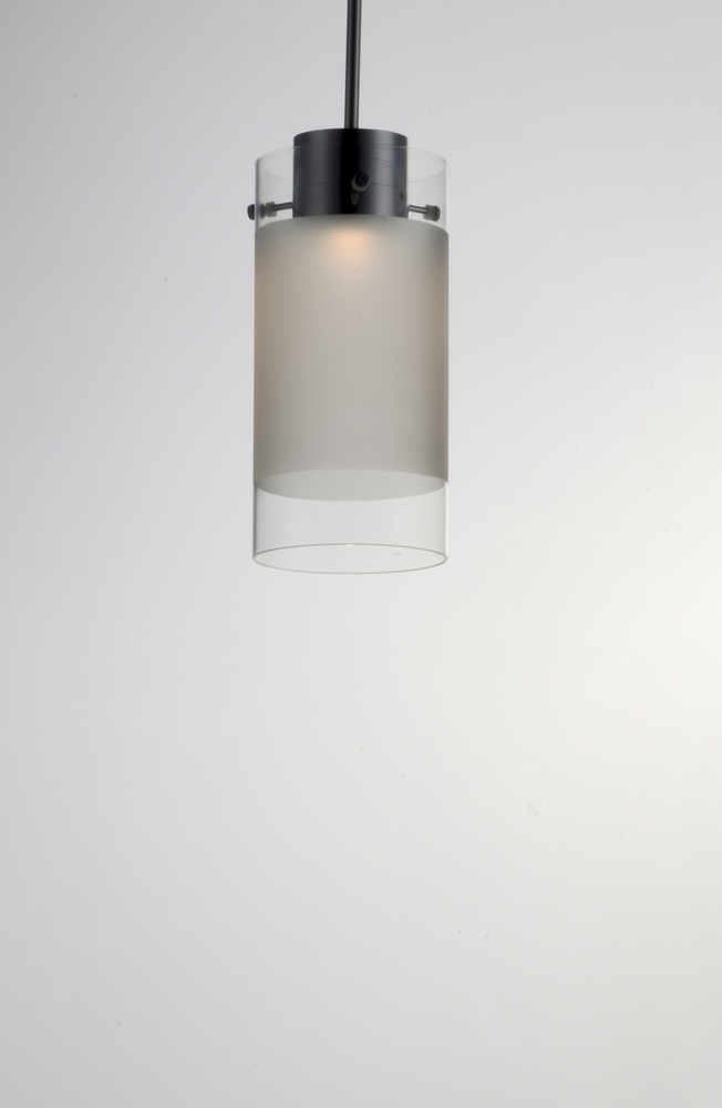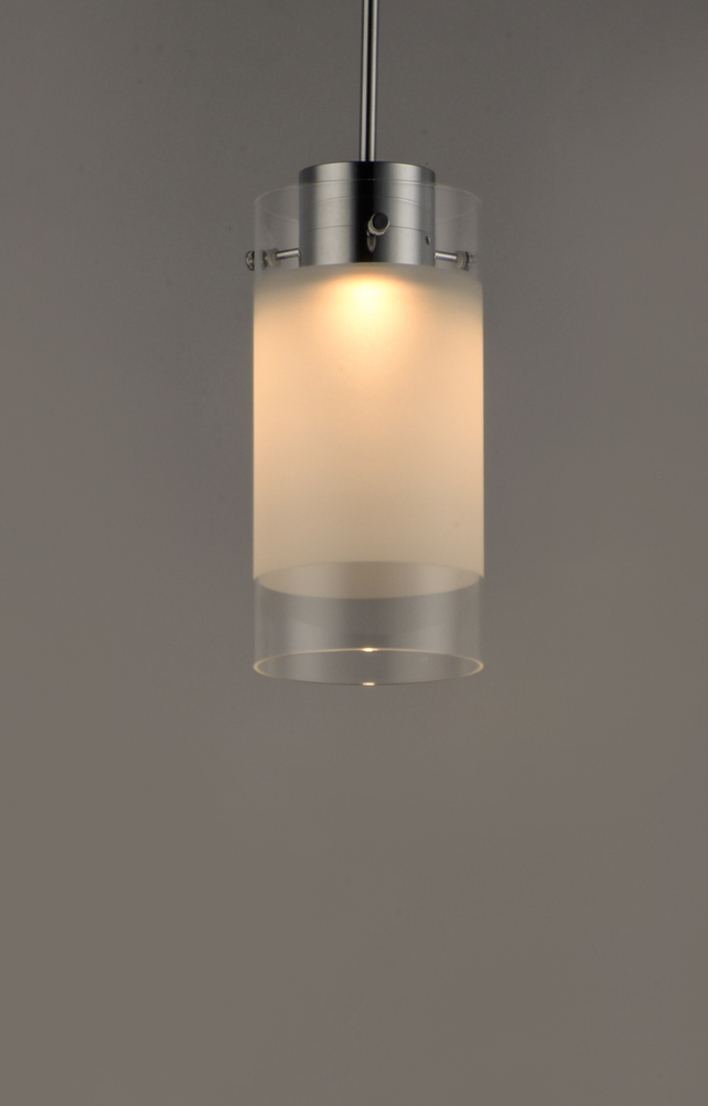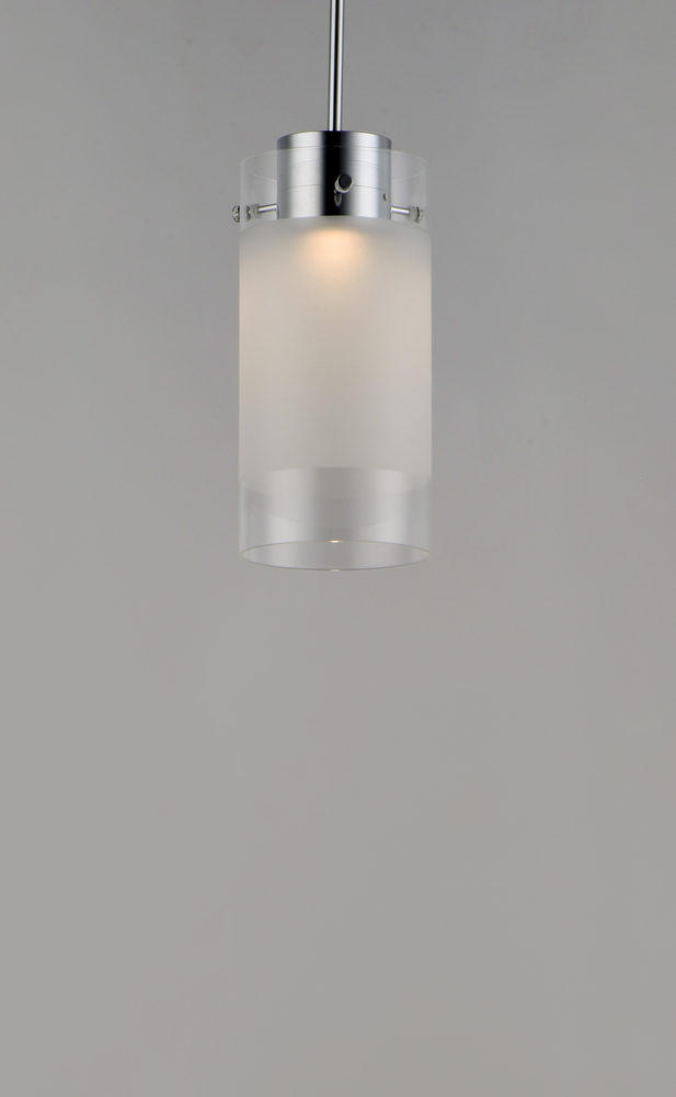 High tech LED modules are encased in die-cast housings finished in Polished Chrome. They support Frost glass cylinders with a Clear reveal on both ends. This classic design is a staple for contemporary pendants. Available in three sizes.