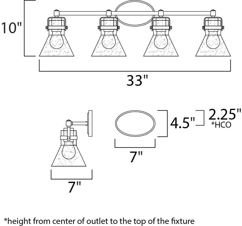 This nautical-inspired collection features Clear Seedy glass cones suspended by a yoke frame. The clear glass offers abundant lighting and compliments the styling of the fixture. Make it a more industrial look by adding filament E26 light bulbs.