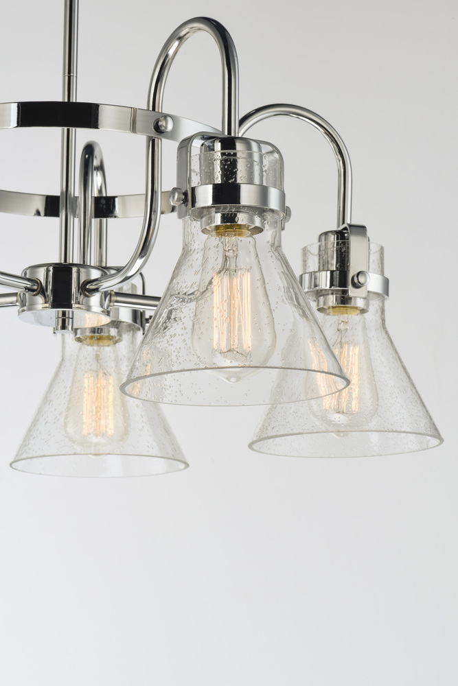This nautical-inspired collection features Clear Seedy glass cones suspended by a yoke frame. The clear glass offers abundant lighting and compliments the styling of the fixture. Make it a more industrial look by adding filament E26 light bulbs.