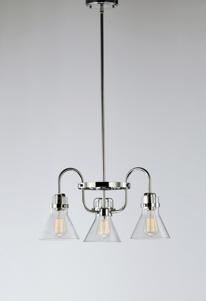 This nautical-inspired collection features Clear Seedy glass cones suspended by a yoke frame. The clear glass offers abundant lighting and compliments the styling of the fixture. Make it a more industrial look by adding filament E26 light bulbs.
