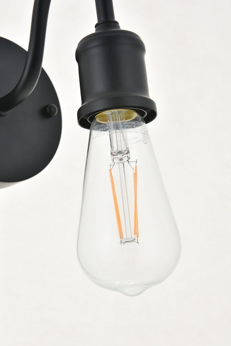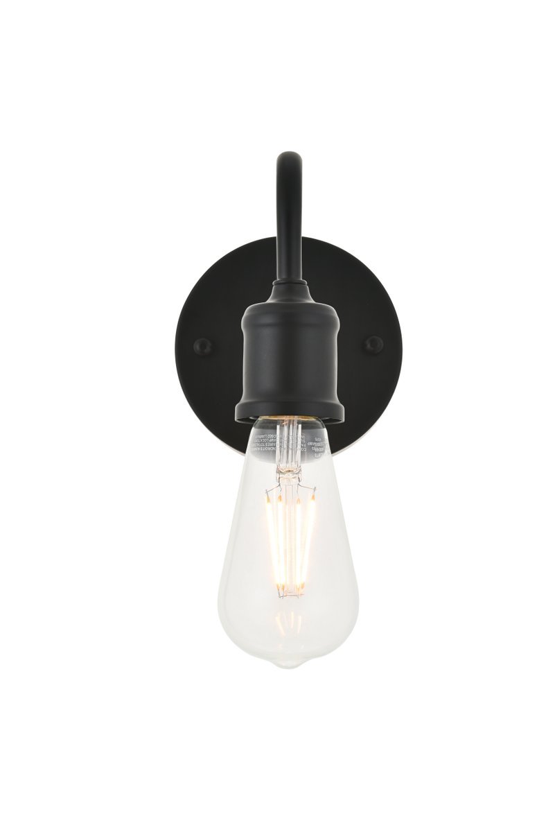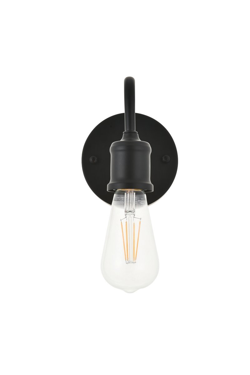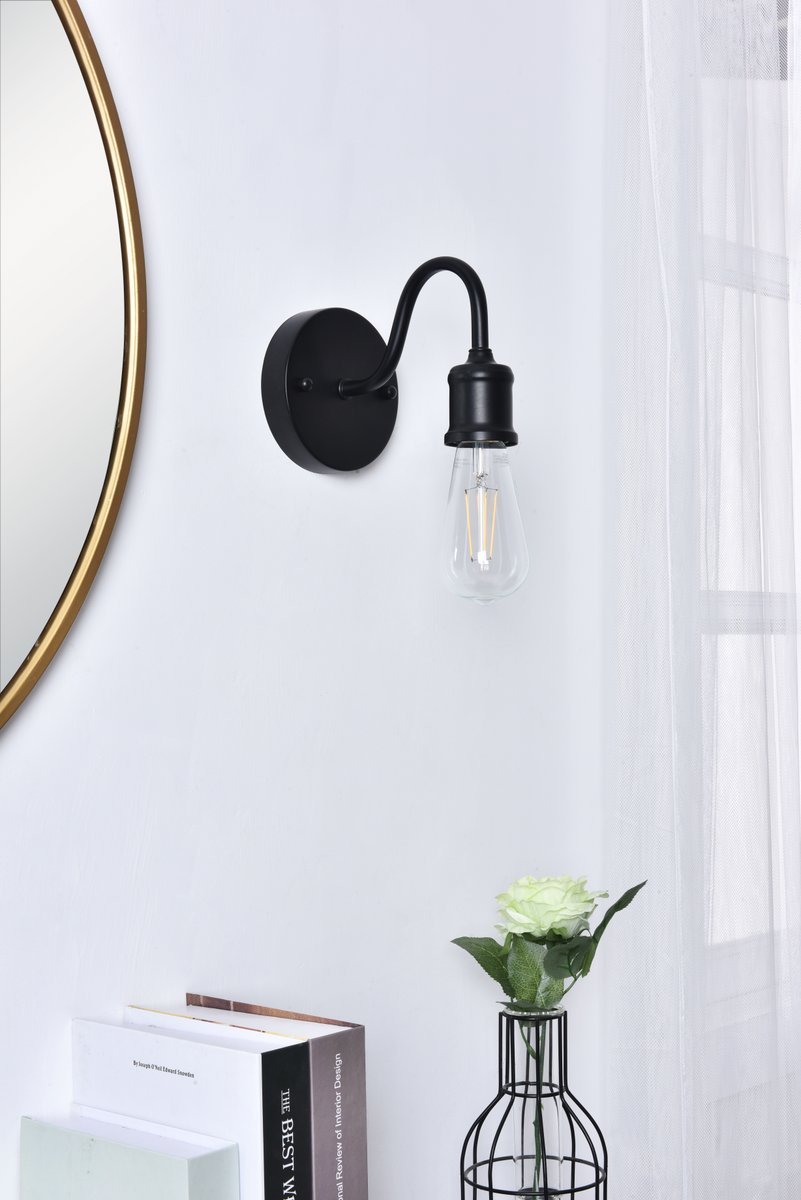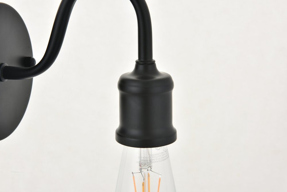 The classical elegance of the Serif collection wall lamp in a black finish brings graceful allure. Its tilde-like arm supports the light that emits a reassuring brilliance, and its gentle presence makes it a wonderful fixture to greet your guests at the entry way, illuminate your nightstands in the bedrooms, or shine in the powder room.