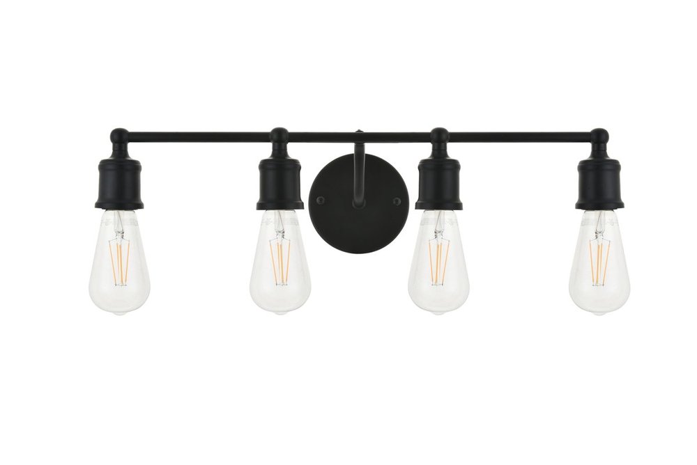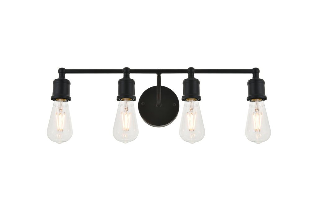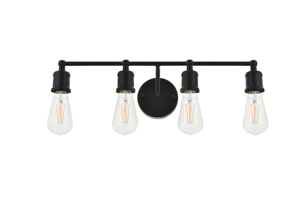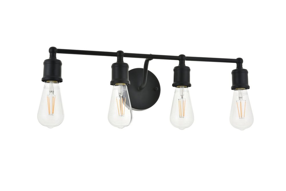 The classical elegance of the Serif collection wall lamp in a black finish brings graceful allure. The arms--reminiscent of a classical font-- supports the 4 lights that emit a reassuring brilliance, and its gentle presence makes it a wonderful fixture to greet your guests at the entry way, illuminate your cabinets in the living room, or shine in the powder room.