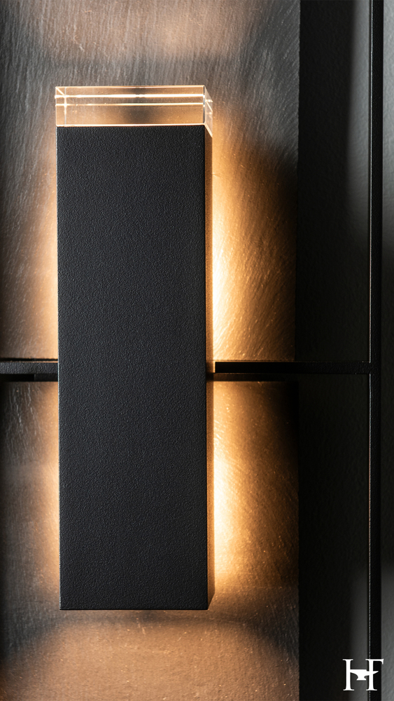 This 34" tall Shadow Box features a natural Vermont black slate backplate, giving it an organic sense of drama. Designer David Martin was inspired by contemporary architecture as he conceived this stunning outdoor wall mount. In an effort to protect our night skies from unnecessary light pollution, this Dark Sky Friendly version features a light inhibitor, impeding uplight from interfering with the evening splendor. Available in a choice of AAMA 2604-rated Coastal Outdoor Finishes.