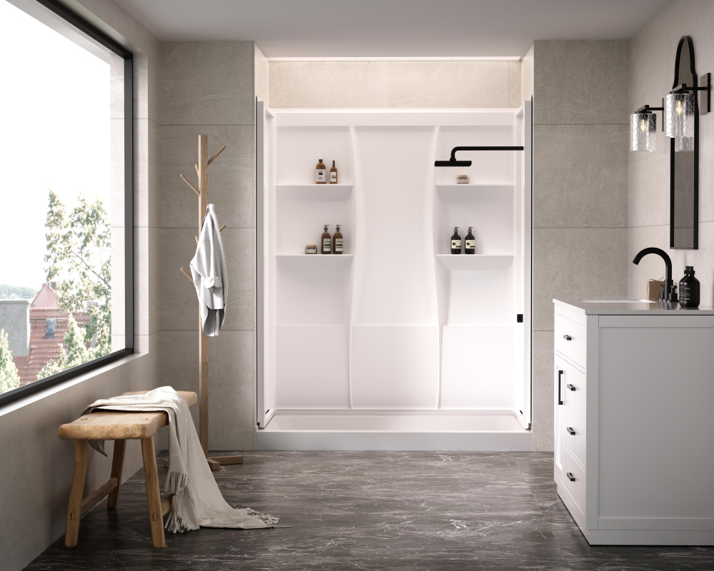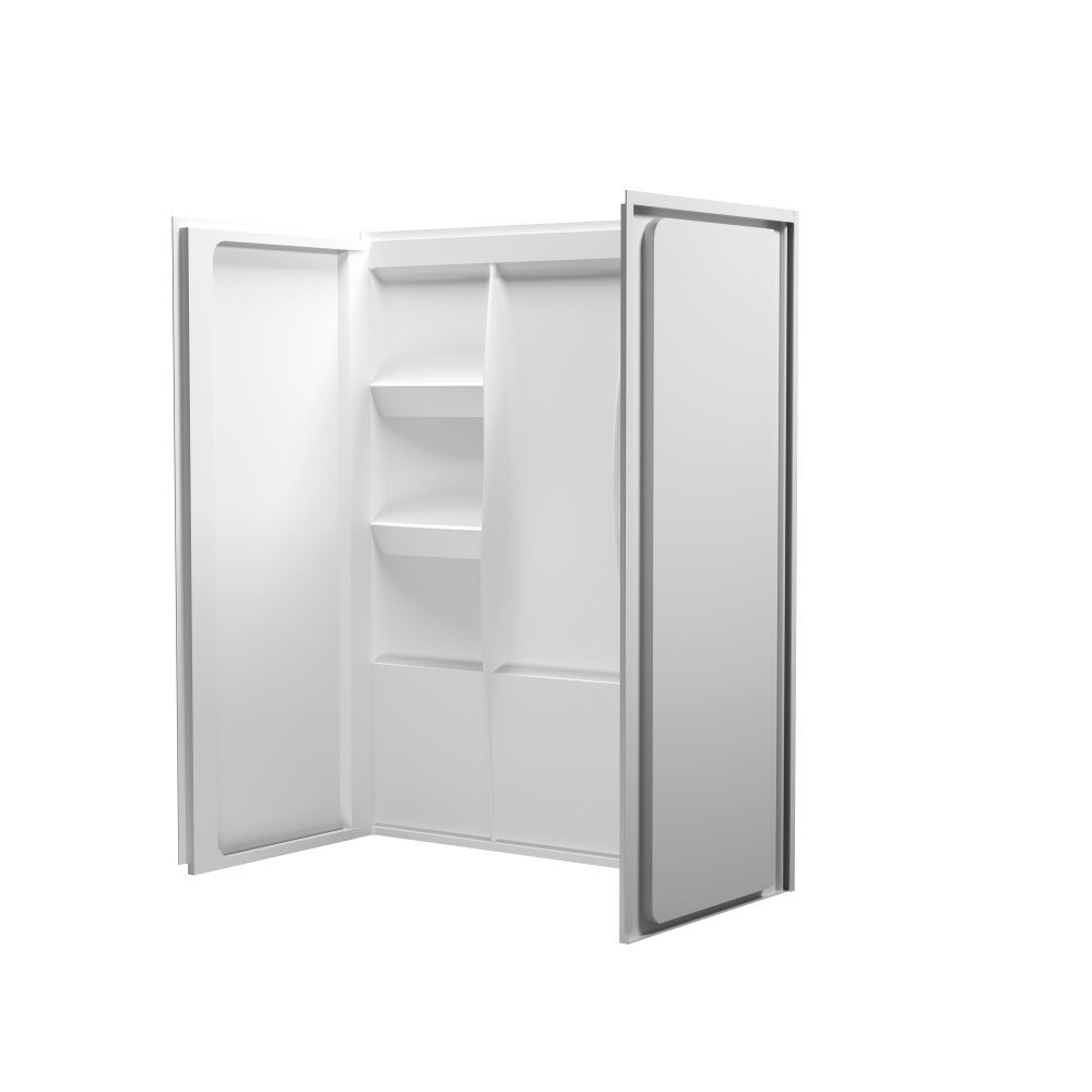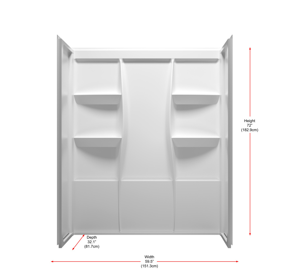 Upgrade your shower space with a sleek, functional, and easy-to-install three-piece acrylic shower wall surround that blends modern design with practical convenience. Featuring four built-in shelves, this surround ensures you always have space to keep shampoos, soaps, and essentials neatly stored. Designed for hassle-free installation, this unit features a direct-to-stud mounting system with built-in nailing flanges, ensuring a secure and lasting connection to the wall. The caulkless construction reduces the risk of leaks, providing peace of mind and long-term durability. With a bright white, high-gloss acrylic finish, this shower surround offers a modern, polished look that resists stains and is incredibly easy to clean. Unlike fiberglass-backed alternatives, the smooth, lightweight material is easy to handle and install without irritation. Whether you’re completing a full renovation or a quick upgrade, this shower surround effortlessly enhances the functionality and aesthetic of any bathroom spac