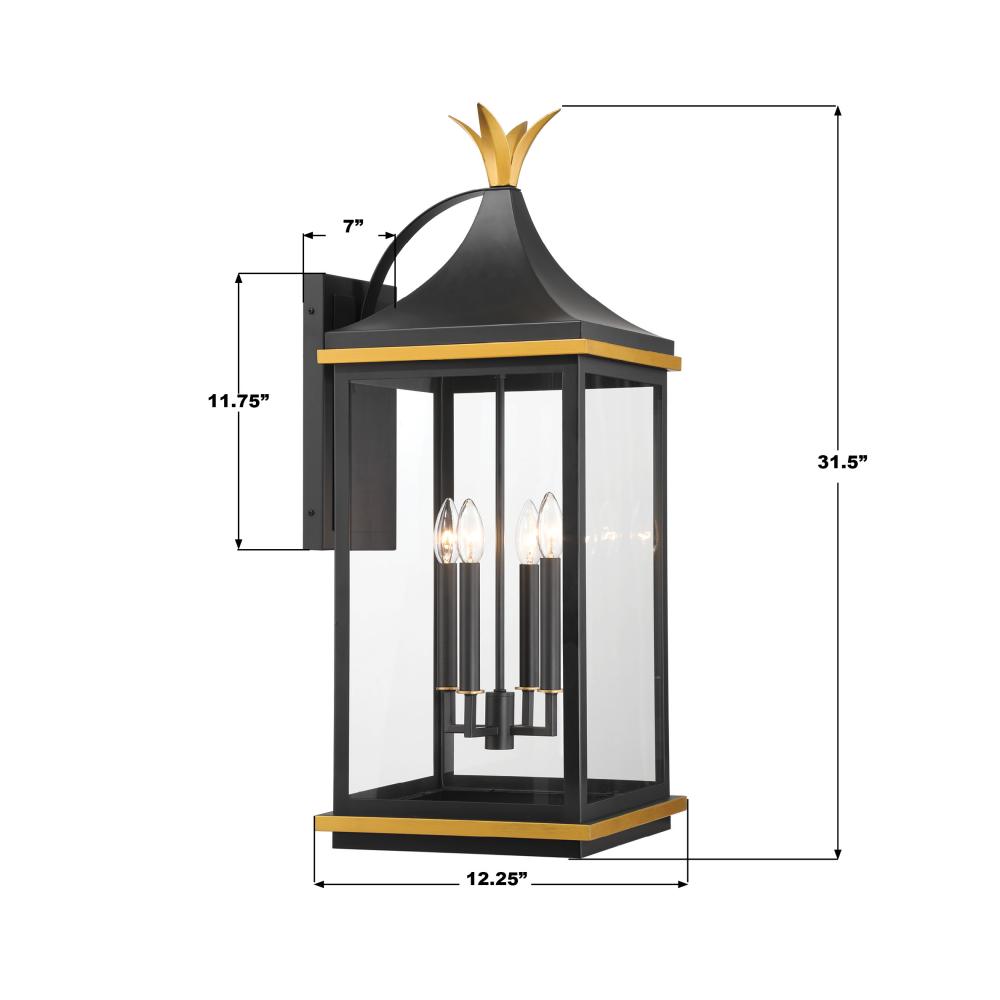 Simpson 4 Light Matte Black + Textured Gold Outdoor Sconce