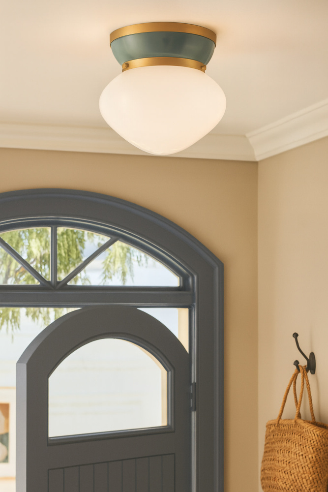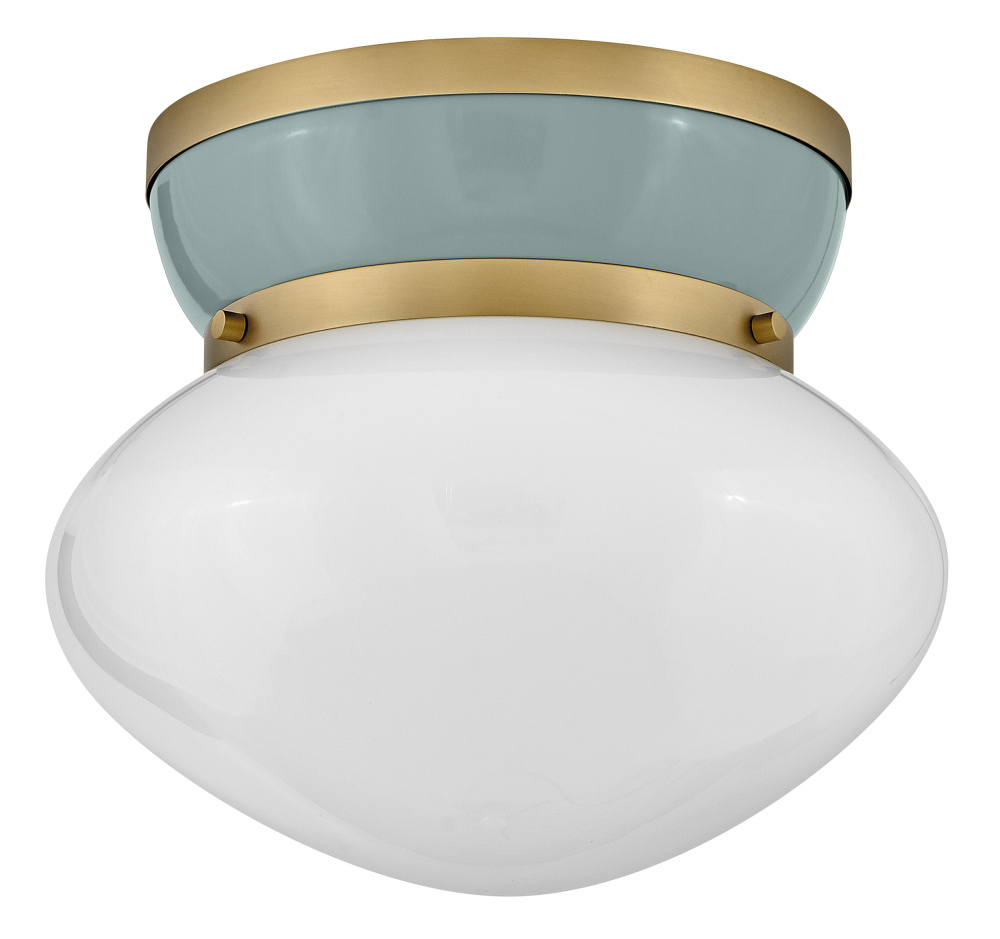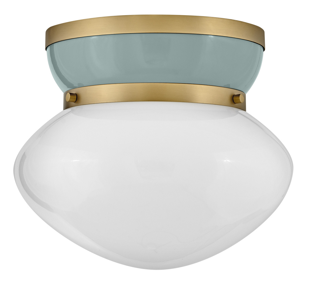 Lucy is a petite beauty that packs a big punch. The curved lines and captivating color combinations are like a whirlwind romance with classic style. The schoolhouse modern shade and bands of Lacquered Brass finish off the timeless love story with a softness that fits in any space or place.