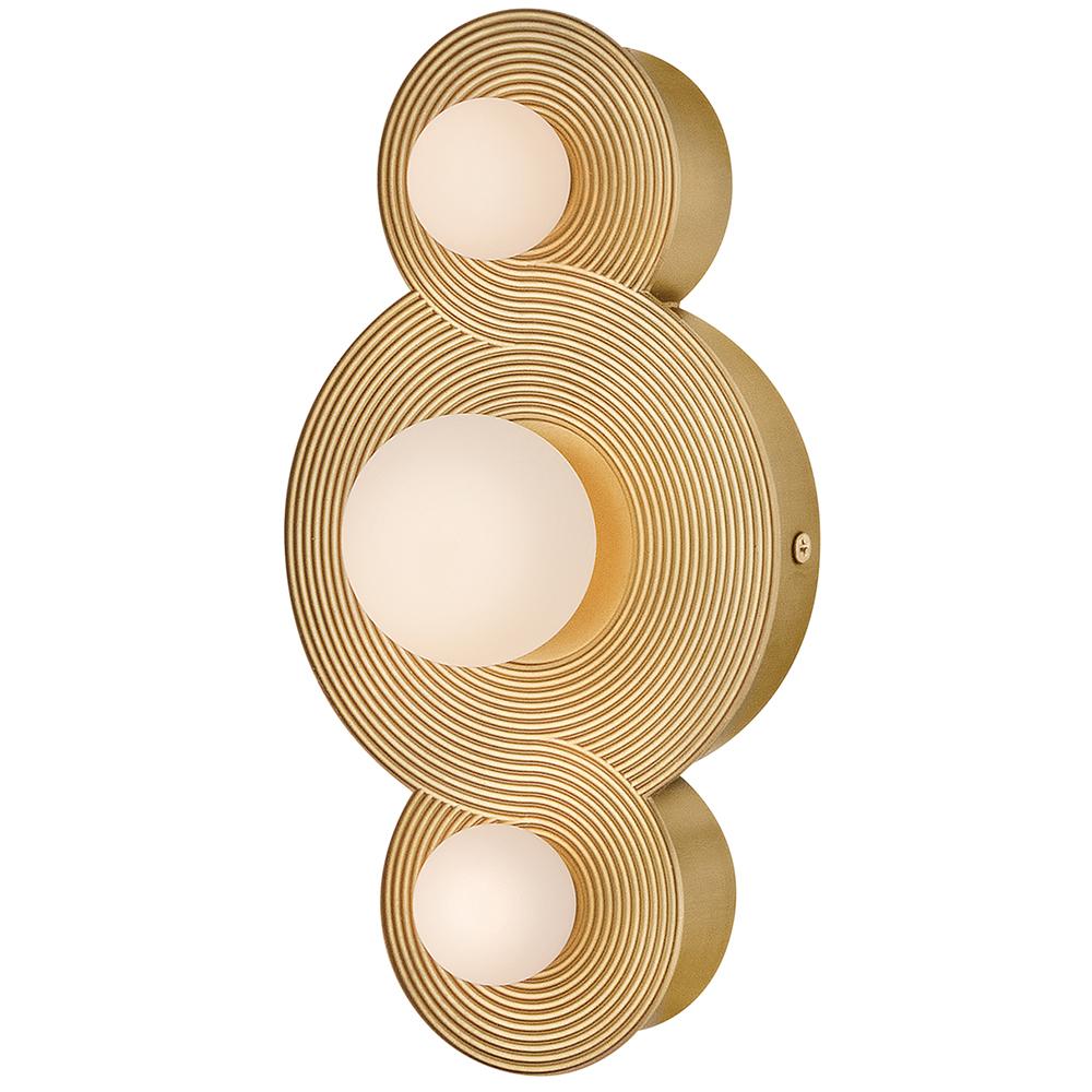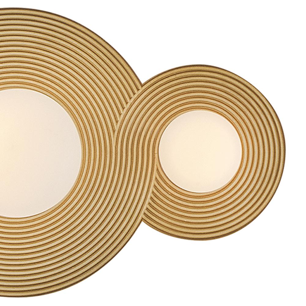 Evoking the concepts of eternity and limitlessness, Rhea’s continuously flowing loops of refined metal create a ribbed texture along its gracefully curved backplate. Dimmable, integrated LED lamping brings comfortable energy into any bathroom or small interior space. Rhea can be installed vertically, horizontally, or even as a flush mount on a ceiling.
