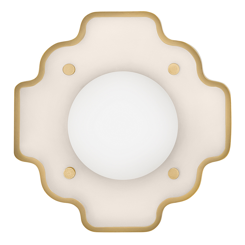 Ideal for cozy nooks or tight areas, Howe is well-constructed with a stunning geometric design, accentuated by its solid inset faceplate and contrasting knobs. Vibrant illumination shines through etched opal glass, enhancing your space with an optimized glow. Howe sconces can be effortlessly mounted on any wall or elegantly hung from the ceiling as a charming mini flush mount.