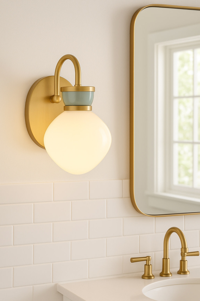 A petite beauty that packs a big punch, Lucy’s curved lines and captivating color combinations are like a whirlwind romance with classic style. The schoolhouse modern cased opal glass shade with charming accent finishes adds a touch of softness to your space.