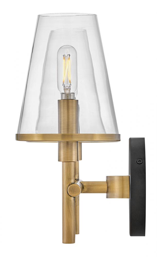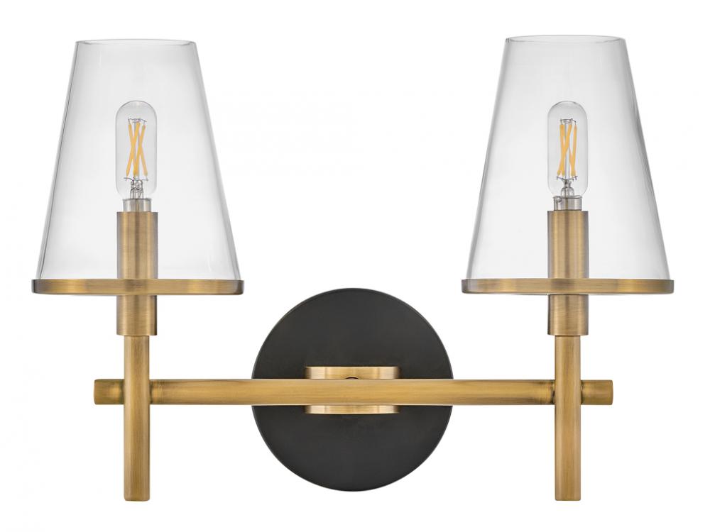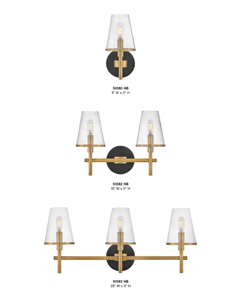 Marten has a clean, crisp look that brings striking transitional elements to any décor style. Clear glass shades have a Heritage Brass rim, perfectly complementing the Black back plate to tie the aesthetic together. The clean lines provide the satisfaction of balanced symmetry while giving off ample light.
