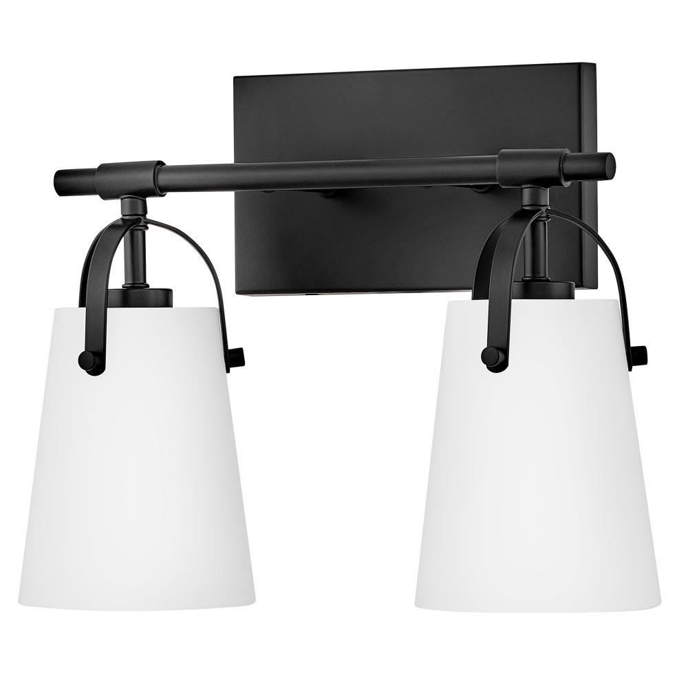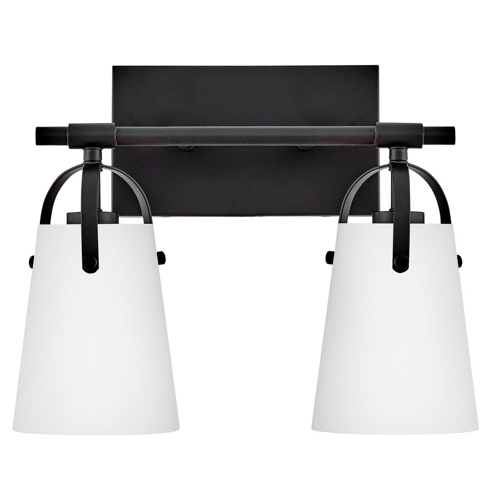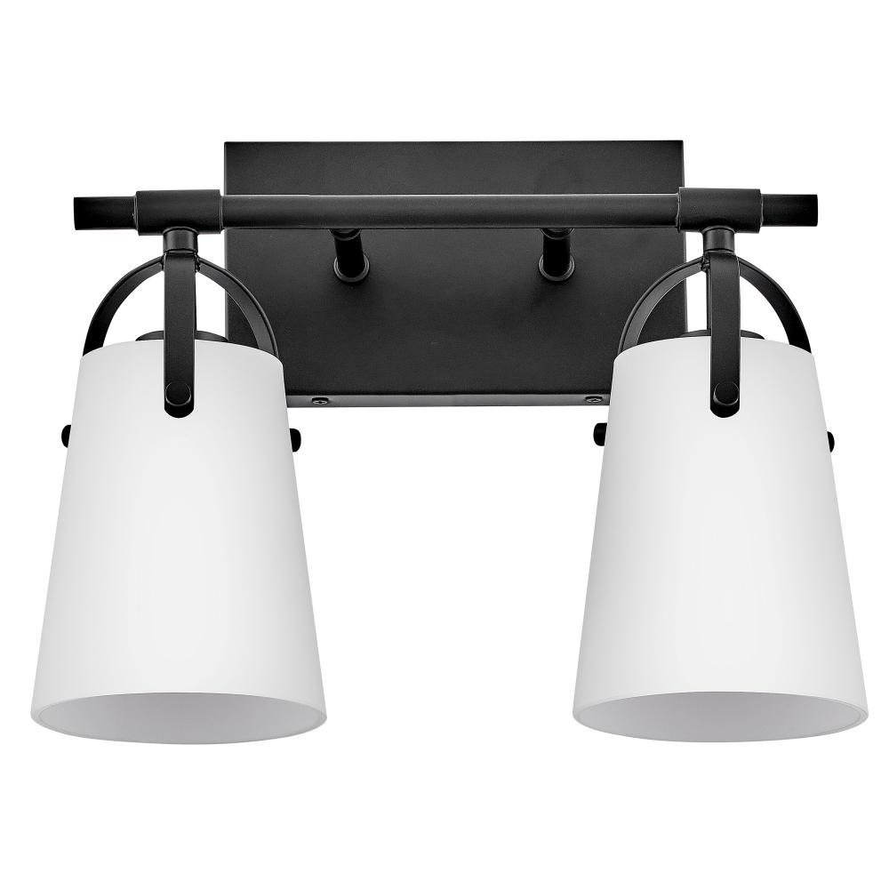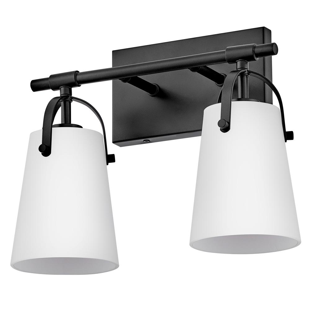 Clean and airy, Foster breathes composed simplicity into any bath space. Softly tapered glass shades suspended from arched handle prongs create a sophisticated transitional silhouette, enhanced by practical yet stylized details.