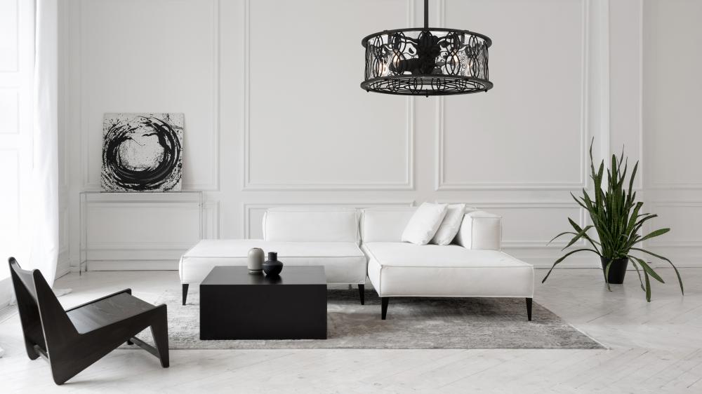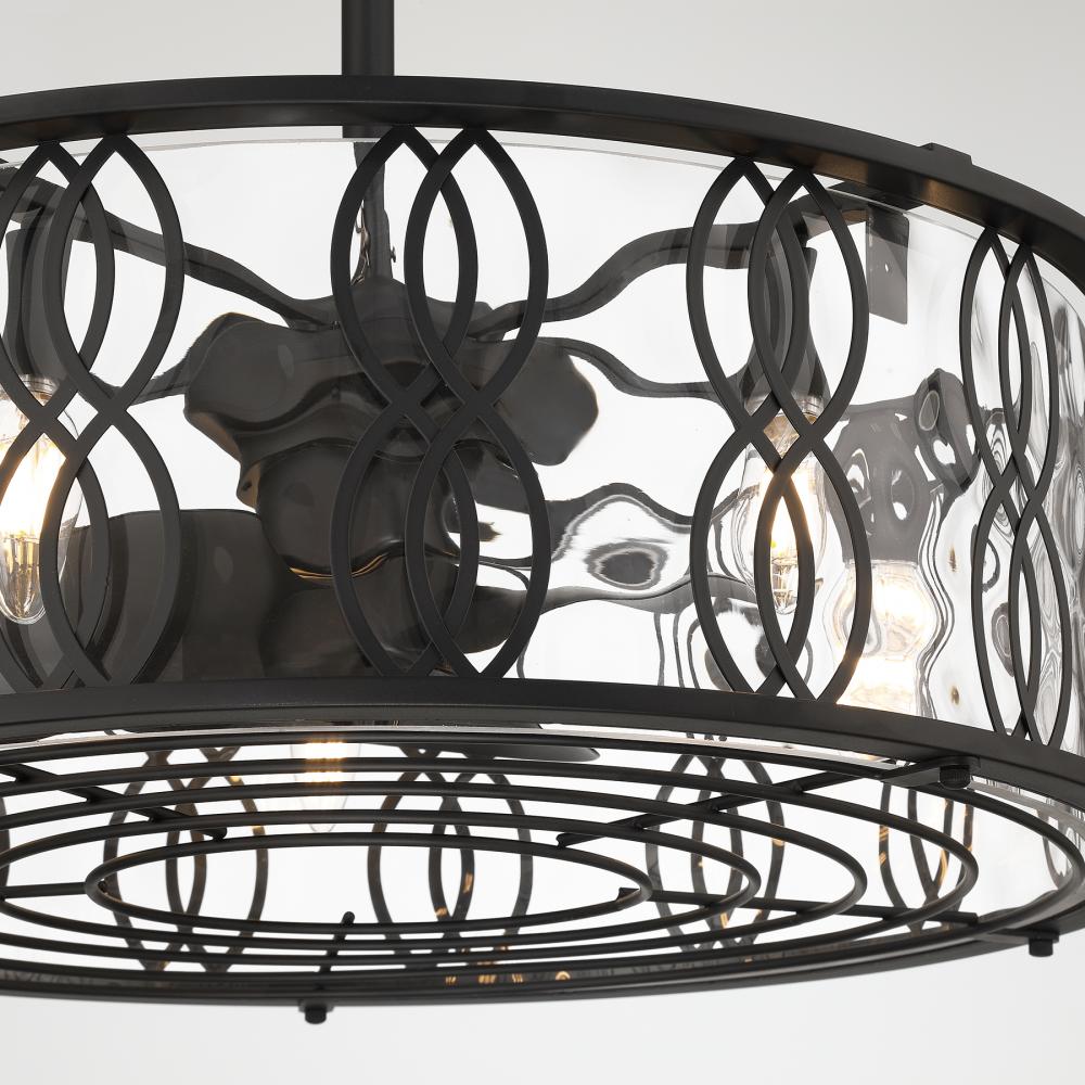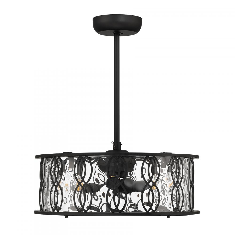 Get an unbelievably cool lighting look with the Savoy House Snowden 5-light Fan D'Lier. Its structure features an intricate curving design that perfectly accentuates the glacier glass shade within. Finished in Matte Black. Snowden is 29" in height and 24" in width. It uses five candelabra size bulbs of up to 60 watts per bulb. LED bulbs are included.