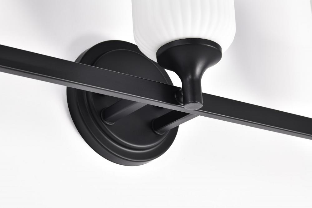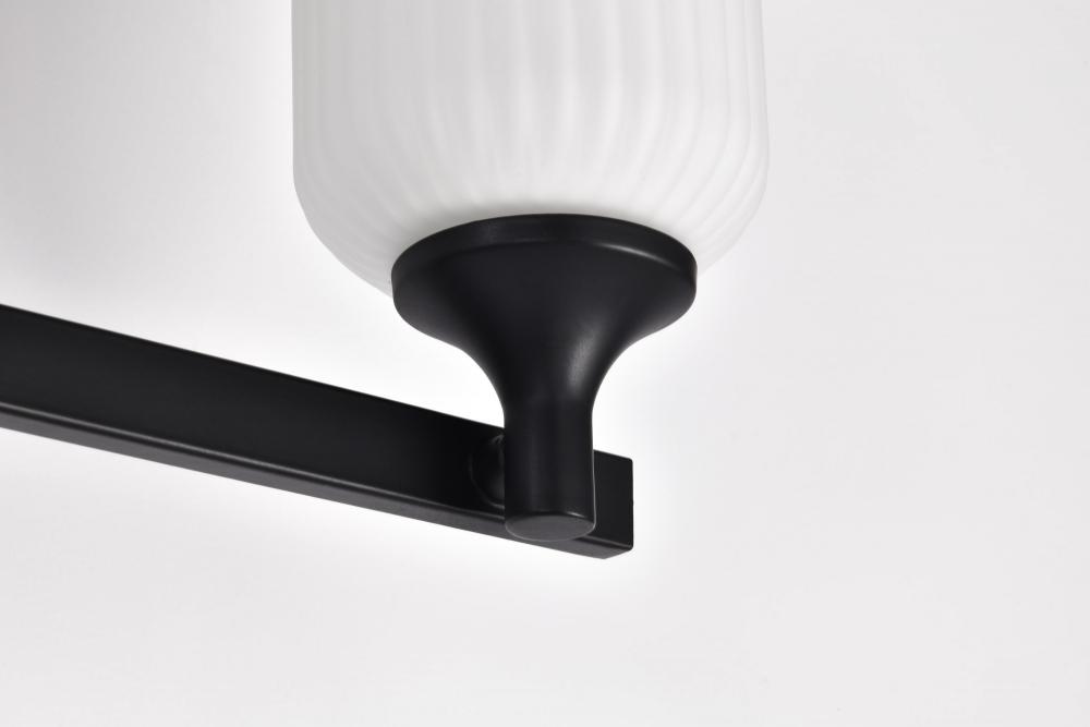 Solara; 3 Light Vanity; Matte Black Finish; Frosted Ribbed Glass