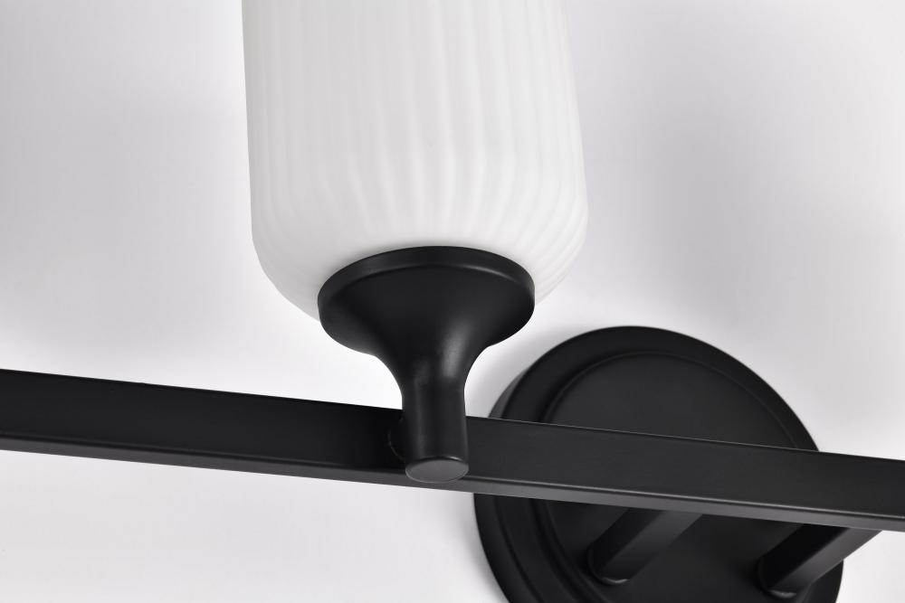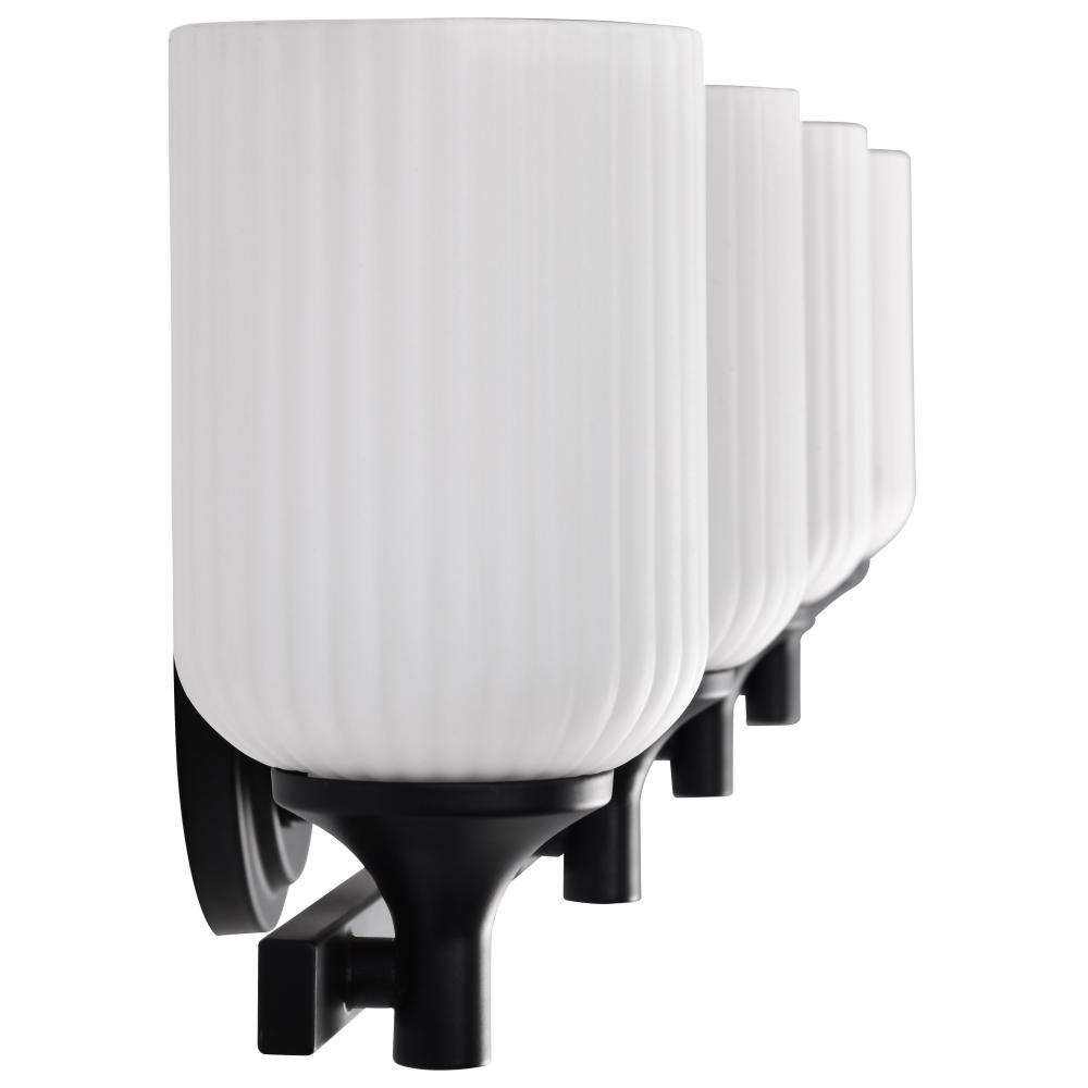 Solara; 4 Light Vanity; Matte Black Finish; Frosted Ribbed Glass
