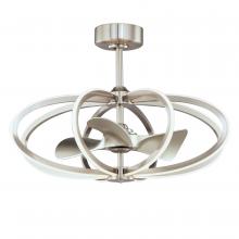 The Solstice Fandelight houses a Wifi-enabled fan within a cage of artfully bent Satin Nickel channels to create a classic form in light. The Smart control functions operate both the fan and the light itself. Adjust the color temperature and light intensit
