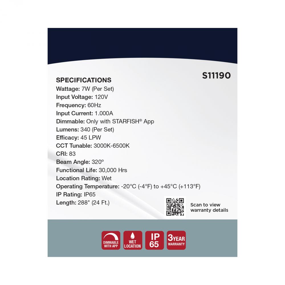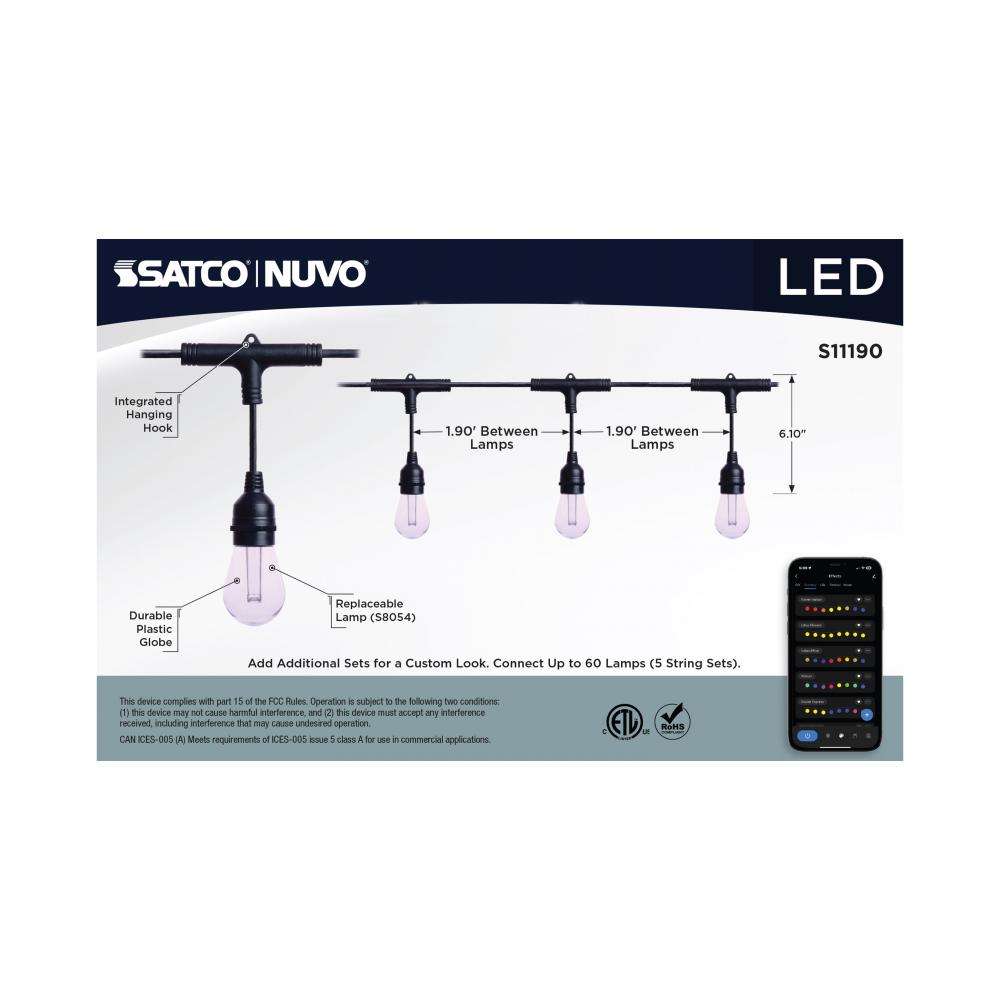 SATCO's STARFISH Smart LED String Lights deliver virtually unlimited color selections and control with the STARFISH app. Easily install with the integrated hanging hooks, connect to the app, and tailor the ambiance of your patio, dining area, or party