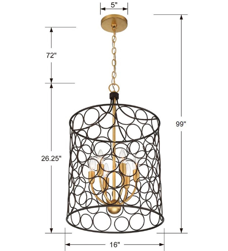 The open and airy drum-shaped pendant features bronze metal rings linked together to create a graphic pattern that stands out against the inner antique gold angular arms. This pendant is sure to inject a pop of personality into a room.