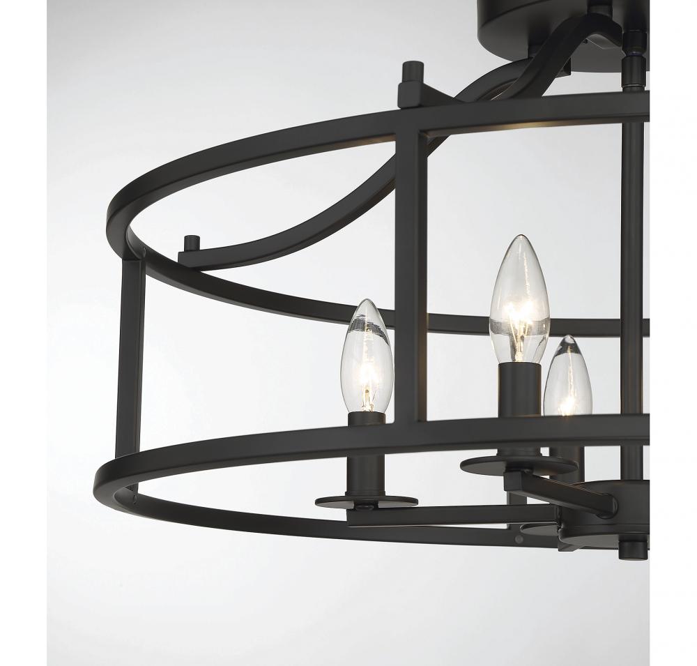 The sizable Savoy House Stockton 5-light ceiling light is a great way to boost the illumination and style throughout the home. It has a sleek, drum-shaped open shade finished in matte black that lets the lights within shine bright. Stockton is 12" in height and 24" in width. It uses five candelabra size bulbs of up to 60 watts per bulb.