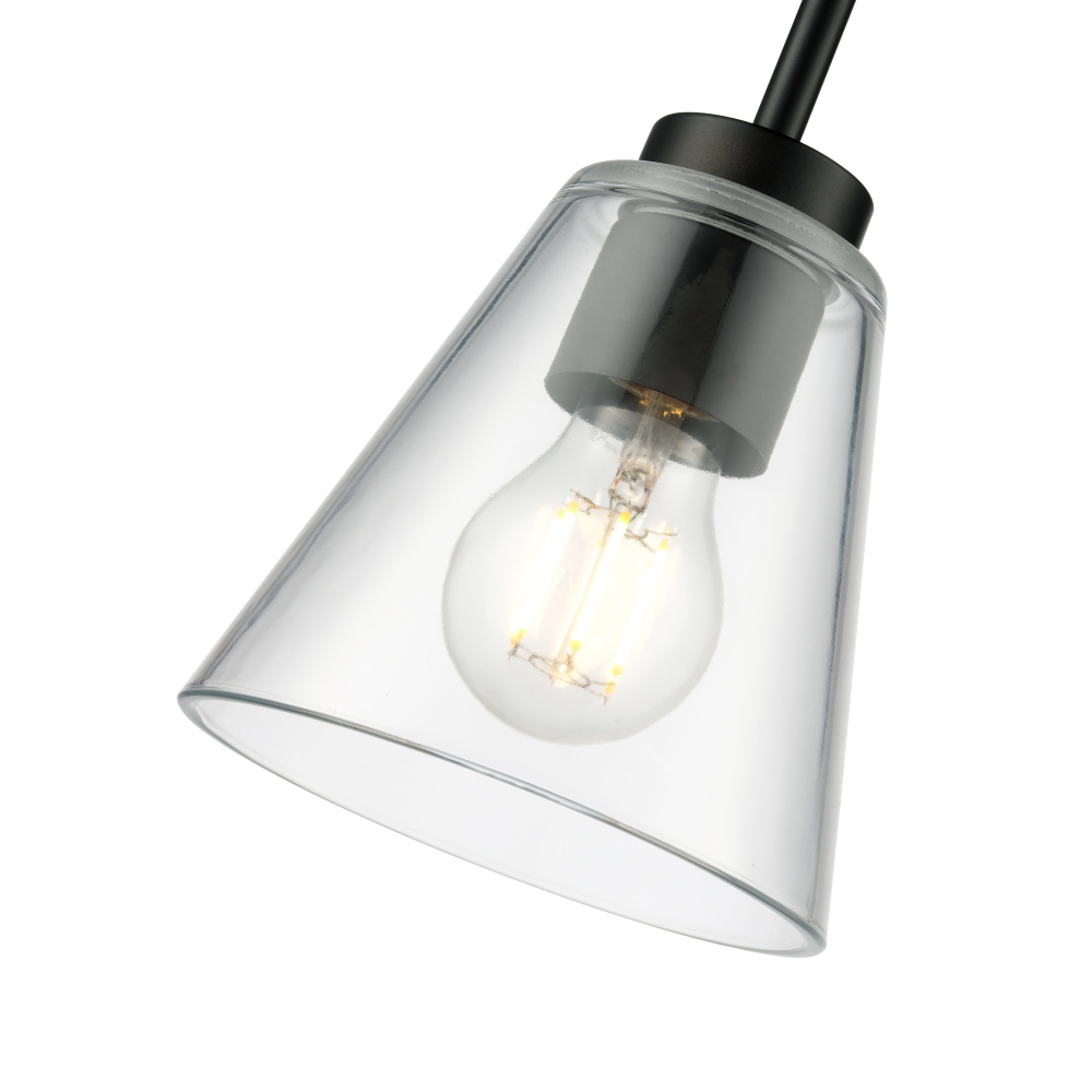 Perfectly flared crystal-clear glass shades framed against streamlined fixtures set a unique design tone for the Strayhan Family of interior lighting. Perfect for illuminating any location from the entryway on throughout the entire home, these fixtures are available as a 1-light sconce, 1-light pendant, 2-light flushmount; 1, 2, 3 and 4-light vanity; and 3, 5, and 9-light chandelier. Finished in matte black, brushed nickel, or modern gold, these understated fixtures infuse a cosmopolitan design sense into any interior space.