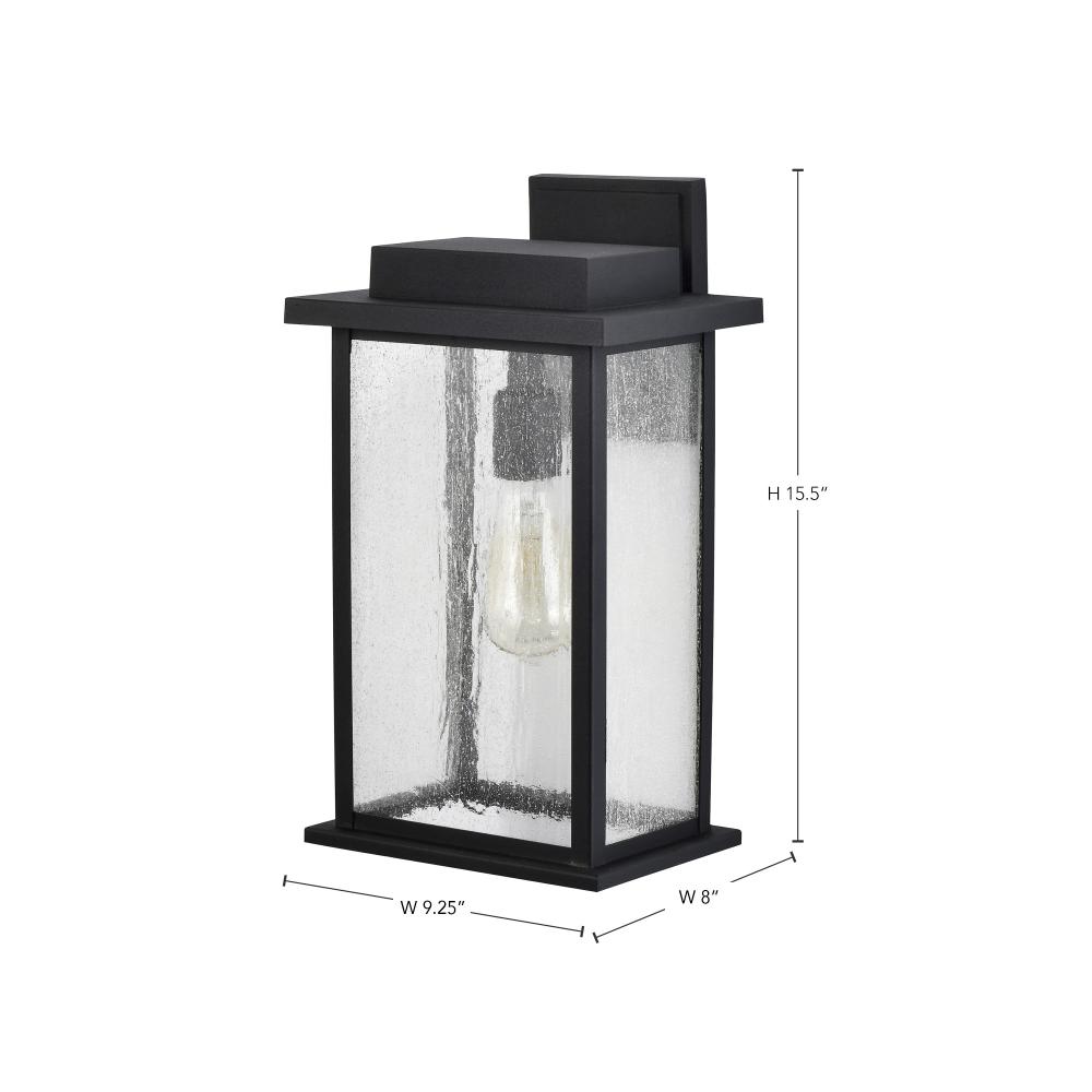 The Sullivan 60-7376 outdoor large wall lantern combines clean lines and minimal details in one flexible design. The seeded clear glass provides subtle diffusion of light and is perfect for lighting the way into your home. The matte black finish works well