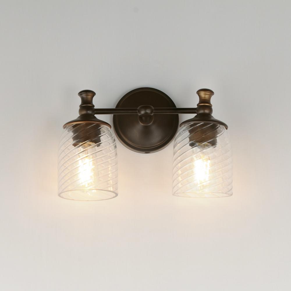 Traditional bell glass shades are reimagined with a swirling and fluted pattern. These Clear Ribbed glass shades are combined with traditional elements on the frame that complete the design. Available in Polished Nickel, Antique Bronze, or Satin Champagne