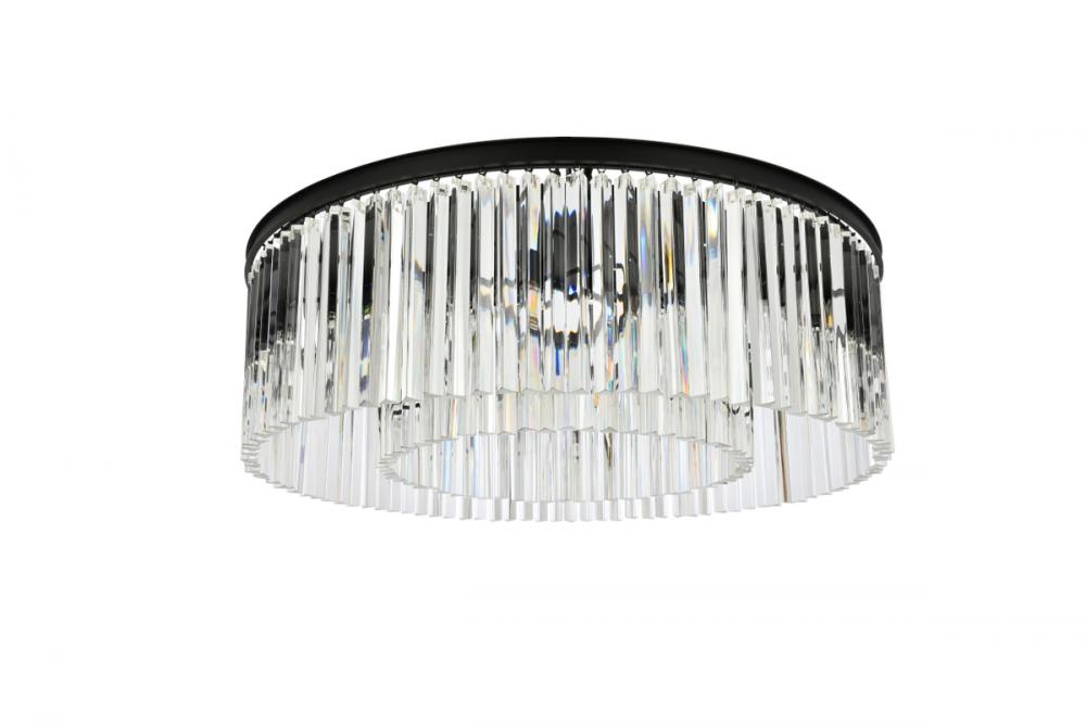 Timeless splendor and modern refinement are brought together in flush-mount Sydney fixtures. Dazzling in dining rooms, staircases, or hallways, the Sydney collection flaunts stunning tiers of royal-cut crystals in clear, golden teak, or Silver shade. A circular Matte Black or polished-nickel finished steel frame adds understated charm to this stunning flush-mount lamp.