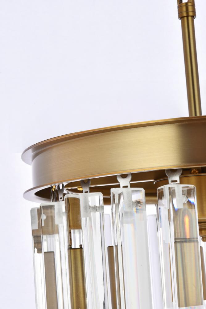 The pendant features a double layer of triangular slender crystal rods, providing a stunning cascade of shimmering light and creating a sense of opulence. The arrangement of the crystal rods adds depth and dimension, making it a captivating centerpiece.