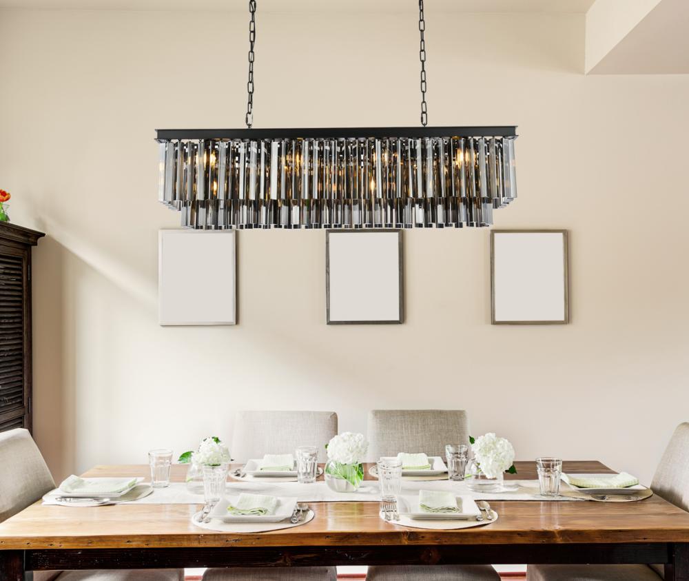 Lamp features a length of 50 inches, a width of 14 inches, a height of 18 inches; requires 12 candelabra lights