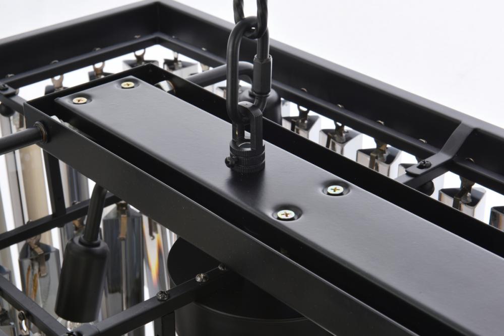 Rectangular steel frame with matte black finish suspended from sturdy chain