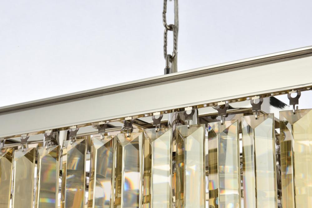Bring the splendor of the ballroom into your home with a sparkling Sydney fixture. Stunning in foyers, dining rooms, or stairwells, the Sydney collection brings to mind the glamour of the Roaring Twenties. Features glimmering tiers of royal-cut clear, golden-teak, or Silver-shade crystals. In mocha-brown or polished-nickel finishes, this sturdy, yet delicate, pendant lamp will be the perfect centerpiece for any décor.