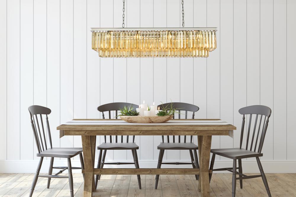 Lamp features a length of 60 inches, a width of 14 inches, a height of 18 inches; requires 12 candelabra lights