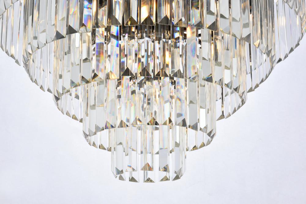 Timeless splendor and modern refinement are brought together in flush-mount Sydney fixtures. Dazzling in dining rooms, staircases, or hallways, the Sydney collection flaunts stunning tiers of royal-cut crystals in clear, golden teak, or Silver shade. A circular Matte Black or polished-nickel finished steel frame adds understated charm to this stunning flush-mount lamp.