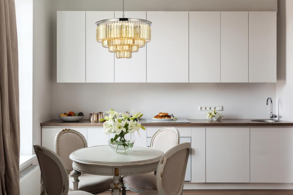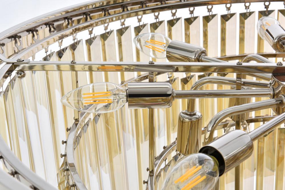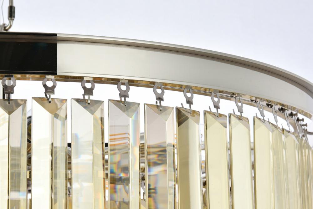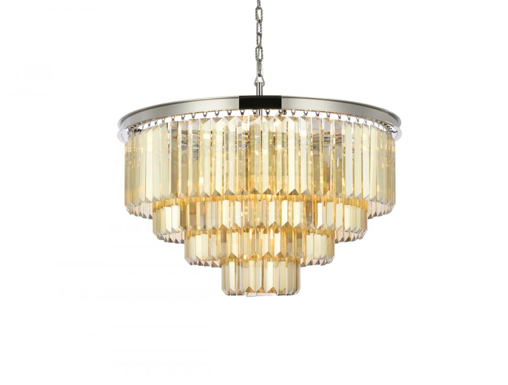 Bring the splendor of the ballroom into your home with a sparkling Sydney fixture. Stunning in foyers, dining rooms, or stairwells, the Sydney collection brings to mind the glamour of the Roaring Twenties. Features glimmering tiers of royal-cut clear, golden-teak, or Silver-shade crystals. In mocha-brown or polished-nickel finishes, this sturdy, yet delicate, chandelier will be the perfect centerpiece for any décor.