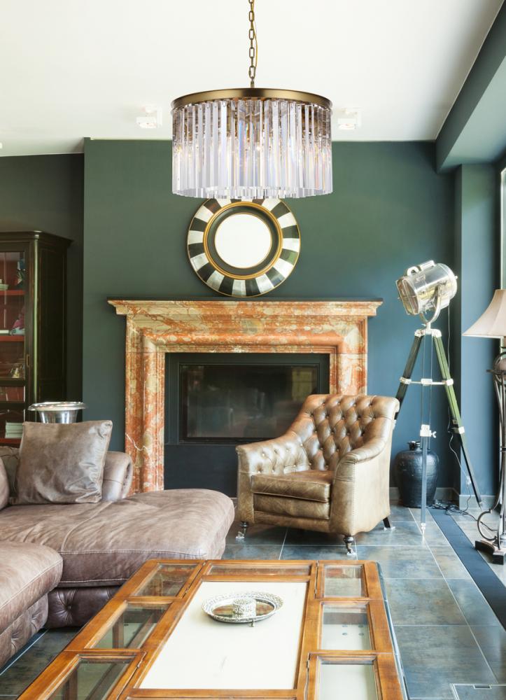 The interplay between the crystals and the light bulbs creates a dazzling effect, casting an enchanting glow throughout the room.
