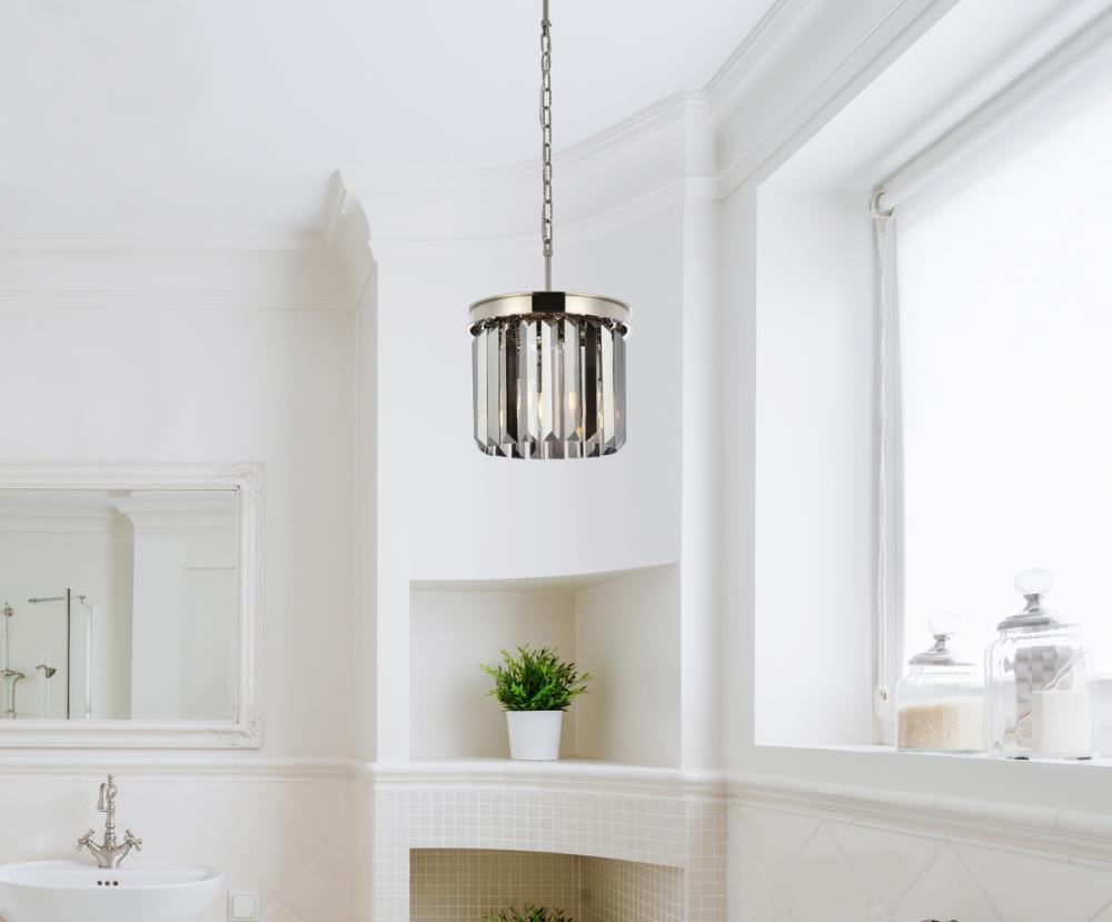 Bring the splendor of the ballroom into your home with a sparkling Sydney fixture. Stunning in foyers, dining rooms, or stairwells, the Sydney collection brings to mind the glamour of the Roaring Twenties. Features glimmering tiers of royal-cut clear, golden-teak, or Silver-shade crystals. In mocha-brown or polished-nickel finishes, this sturdy, yet delicate, pendant lamp will be the perfect centerpiece for any décor.