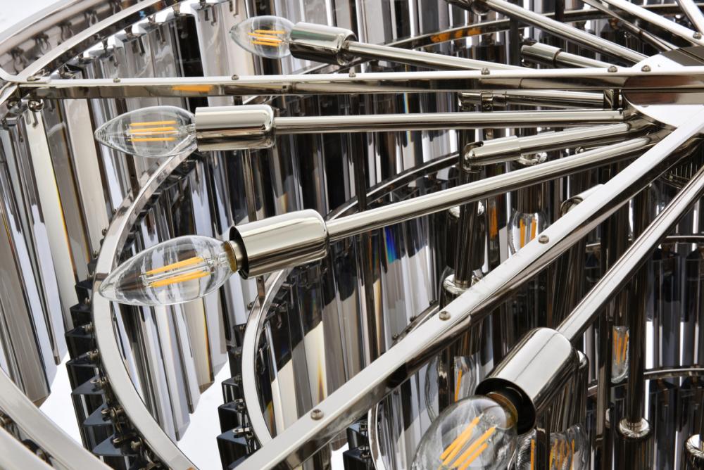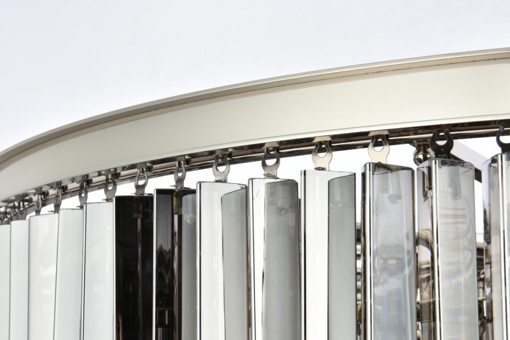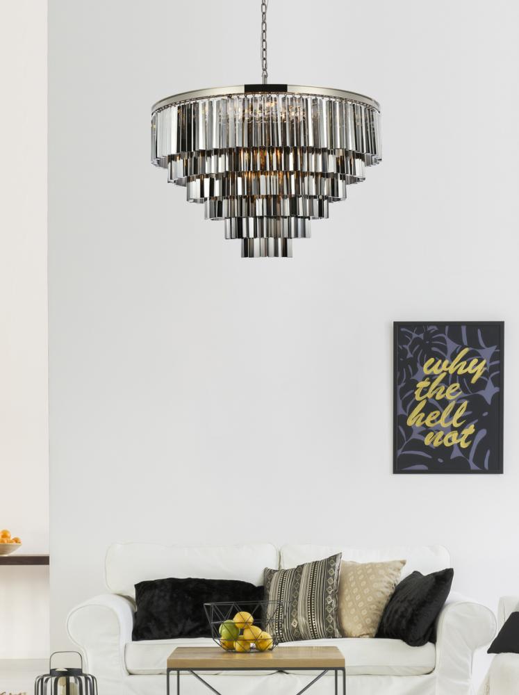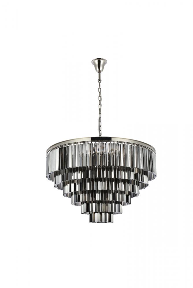 Bring the splendor of the ballroom into your home with a sparkling Sydney fixture. Stunning in foyers, dining rooms, or stairwells, the Sydney collection brings to mind the glamour of the Roaring Twenties. Features glimmering tiers of royal-cut clear, golden-teak, or Silver-shade crystals. In mocha-brown or polished-nickel finishes, this sturdy, yet delicate, chandelier will be the perfect centerpiece for any décor.