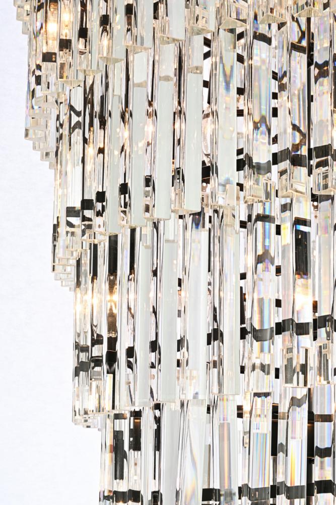 The chandelier features 10 tiers of triangular slender crystal rods, providing a stunning cascade of shimmering light and creating a sense of opulence.