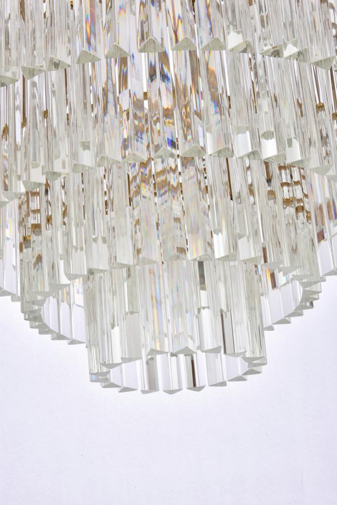 The round chandelier features 3 tiers of triangular slender crystal rods, providing a stunning cascade of shimmering light and creating a sense of opulence.