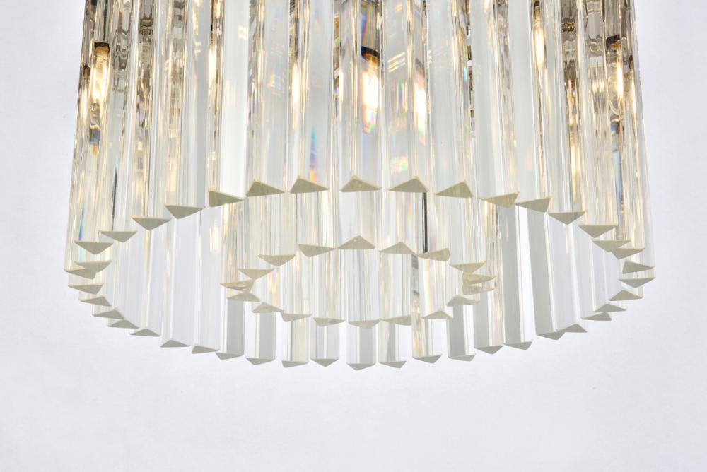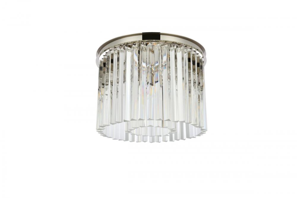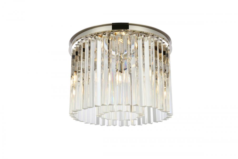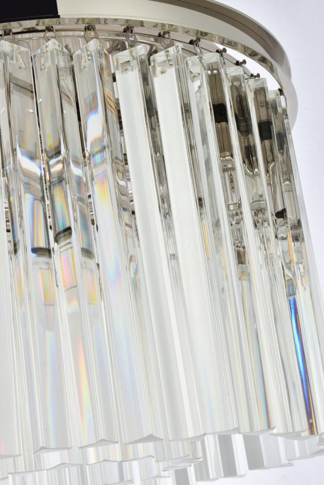 Timeless splendor and modern refinement are brought together in flush-mount Sydney fixtures. Dazzling in dining rooms, staircases, or hallways, the Sydney collection flaunts stunning tiers of royal-cut crystals in clear, golden teak, or Silver shade. A circular mocha-brown or polished-nickel finished steel frame adds understated charm to this stunning flush-mount lamp.