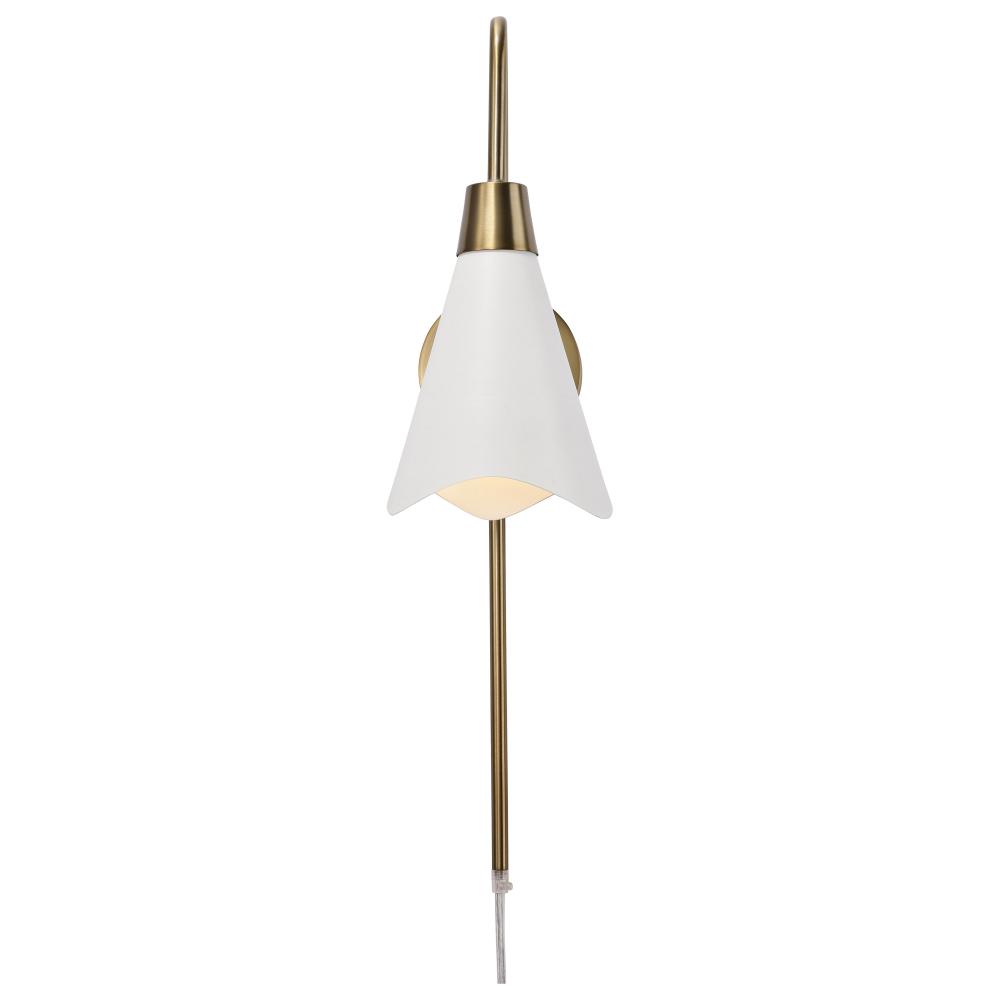 Tango; 1 Light; Wall Sconce; Matte White with Burnished Brass