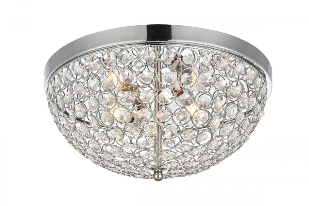 Taye collection flush mounts bring serious sparkle to a bedroom, bathroom or foyer with an intricate, yet understated design. A hemispherical cage-like frame features a central column and mounting plate in a bold Chrome finish. Suspended almost invisibly between the filigree-style wires, individual clear Crystal octagons shine. Light from hidden bulbs (Not included) is multiplied and refracted through the gorgeous Crystals, making this classic flush mount a brilliant choice.