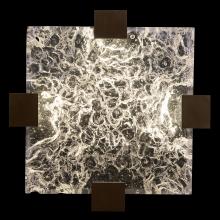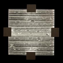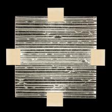 Semi-flush mount featuring “Rake” cast glass. Inspired by Zen patterns formed with tiny pebbles, “Rake” combines monumental cast glass with deep hand carved patterns, perfectly captured by an array of hidden waterproof LEDs, giving the glass a truly contemporary feel to an ancient pattern. Choice of three finishes, champagne tinted gold leaf finish or silver leaf for indoor only, and a hand rubbed black iron (shown) for indoor and outdoor use.