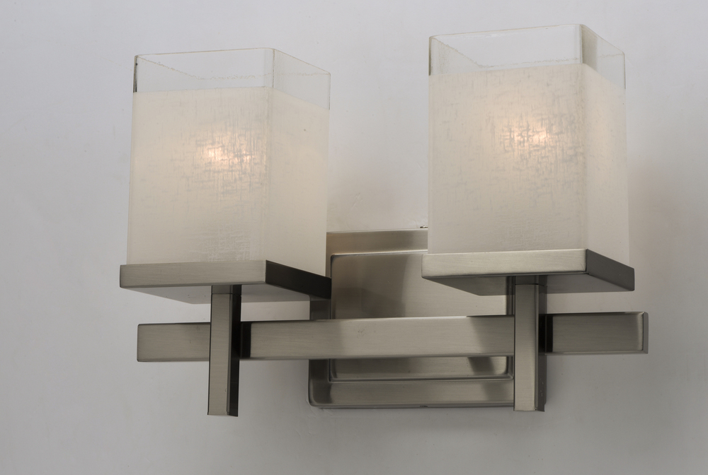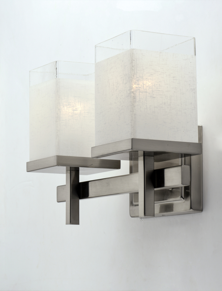 Square glass shades ride upon a rectangular bar to create geometry at its best. Available in Polished Chrome with Satin White glass and Satin Nickel and white Linen glass.