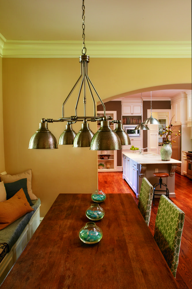 Featuring hammered metal shades and an industrial chic style, the Timarron collection by Craftmade offers chandeliers, pendants, islands, and a sconce ideal for any room in your home.