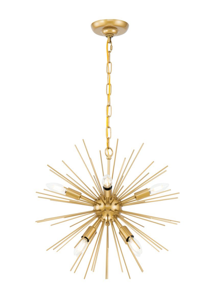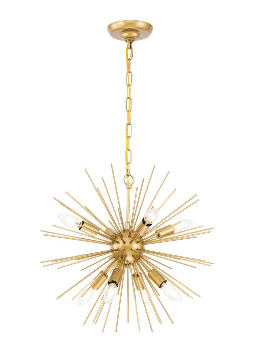 The Timber Collection of pendant lamps sure know how to make a statement! The 8 bulbs are mingle closely with the extruding rods, creating a game of hide-and-seek. But luckily for you, the lights are will always shine and ensure that your rooms will be both illuminated grandly and with confident style. Available in a brass, champagne, and two-toned brass and black finish, hang this fixture in your dining room, living room, foyer (light bulbs not included).